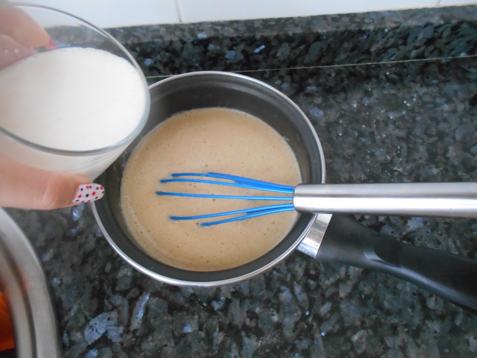 Vertemos los líquidos en el cuenco y mezclamos todo junto hasta que quede homogéneo.