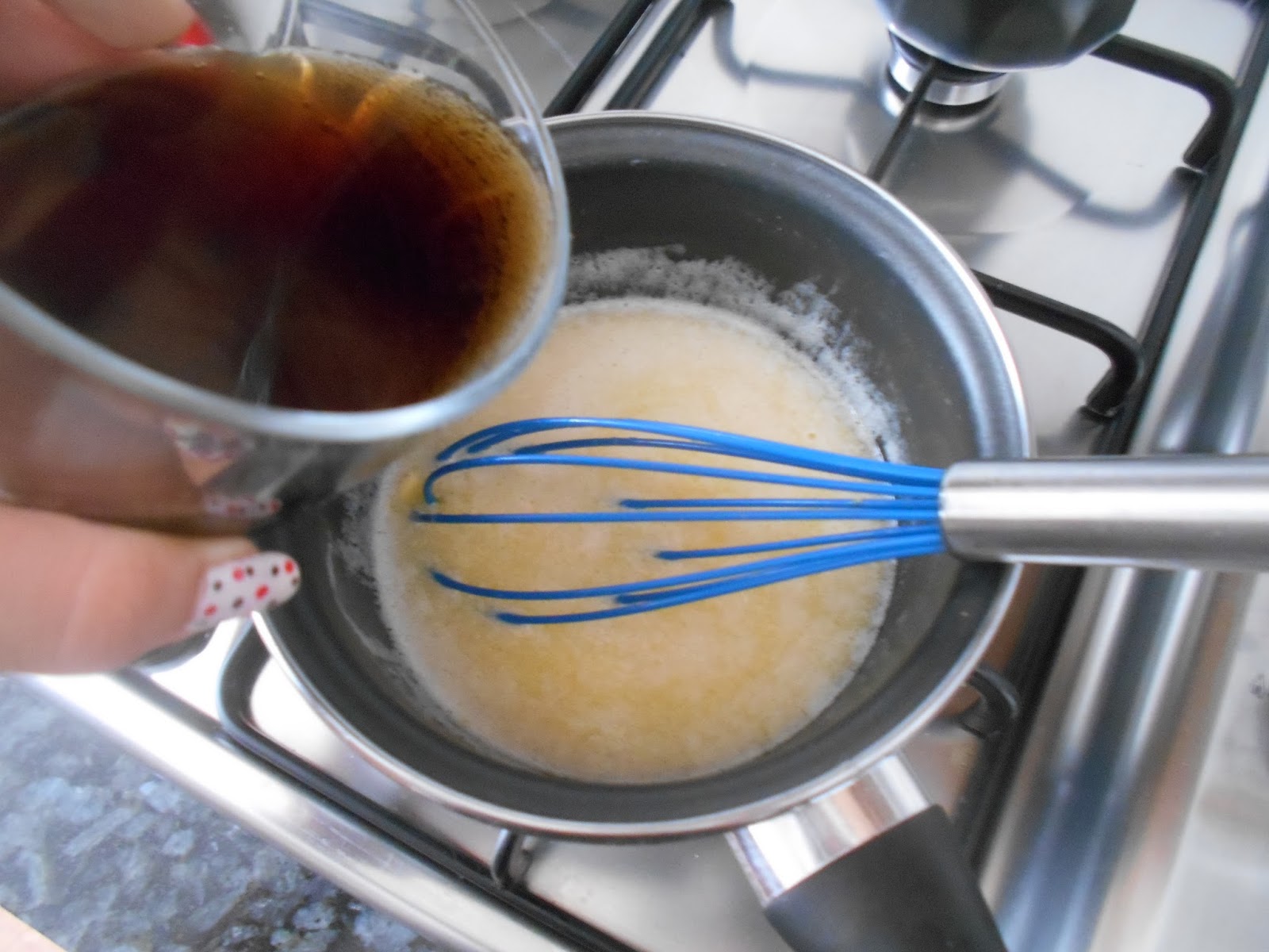 Le echamos a la mantequilla la coca cola, y mezclamos bien.