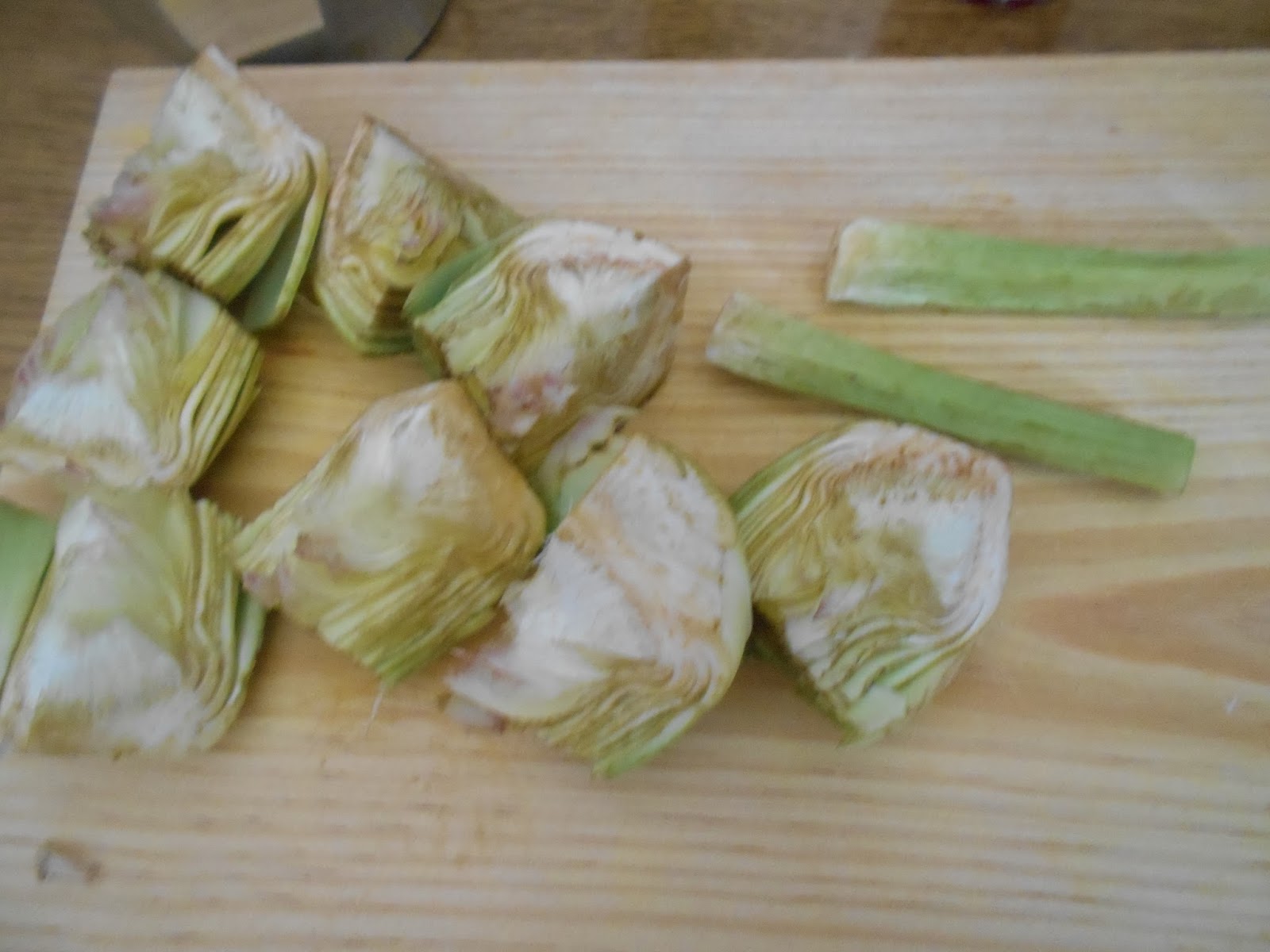 Cortamos las alcachofas en cuartos