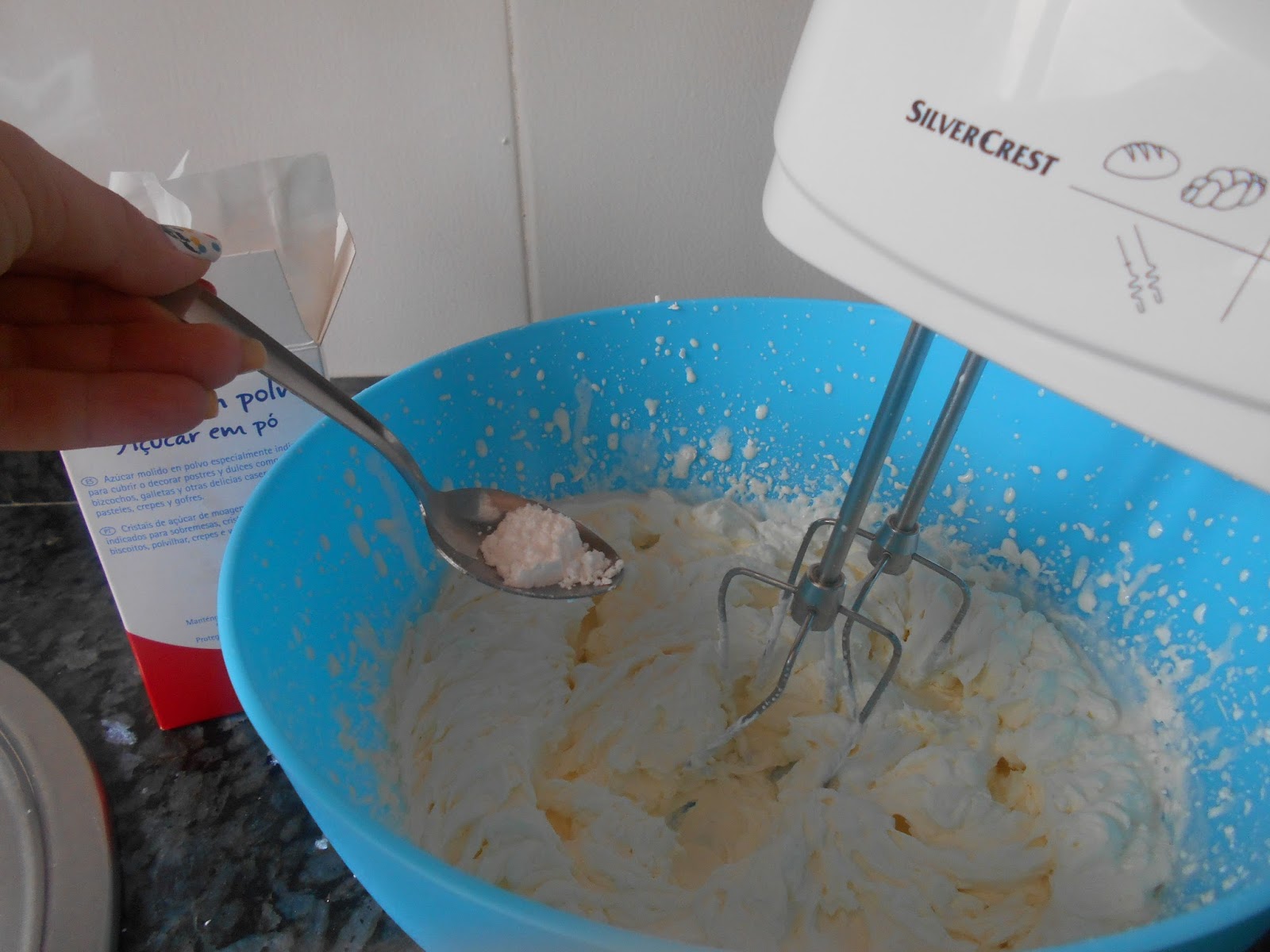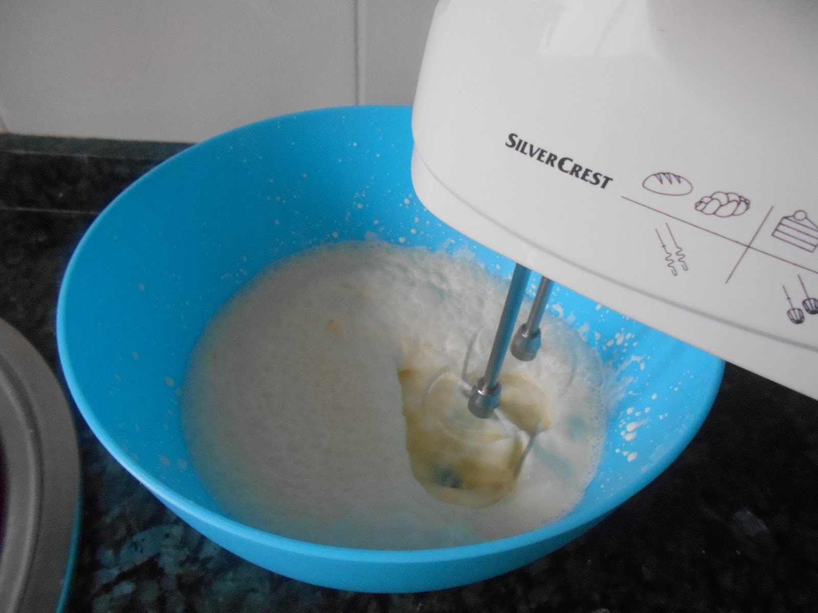 Montamos la nata con unas varillas. Recordad que la nata debe estar muy fria.