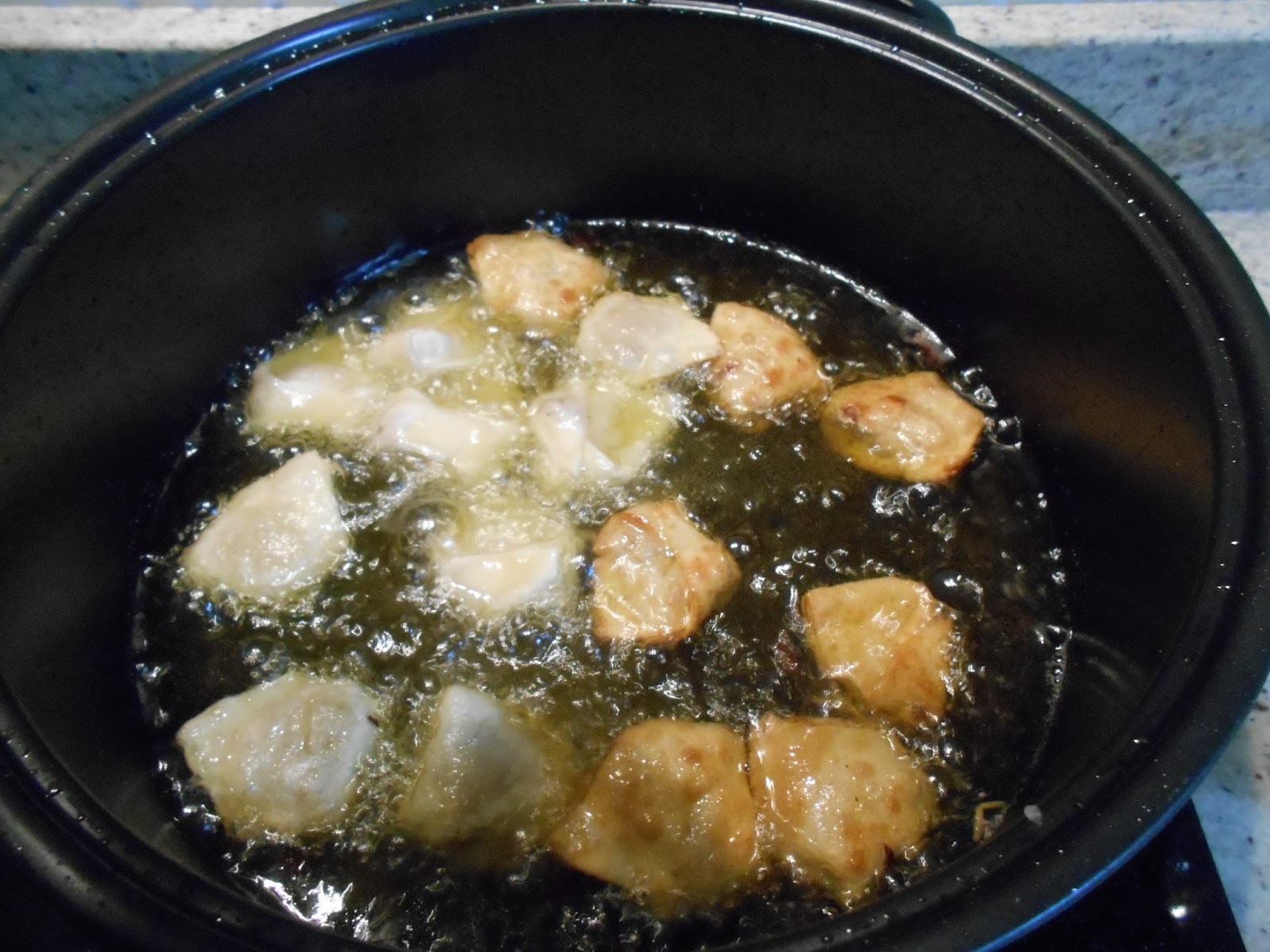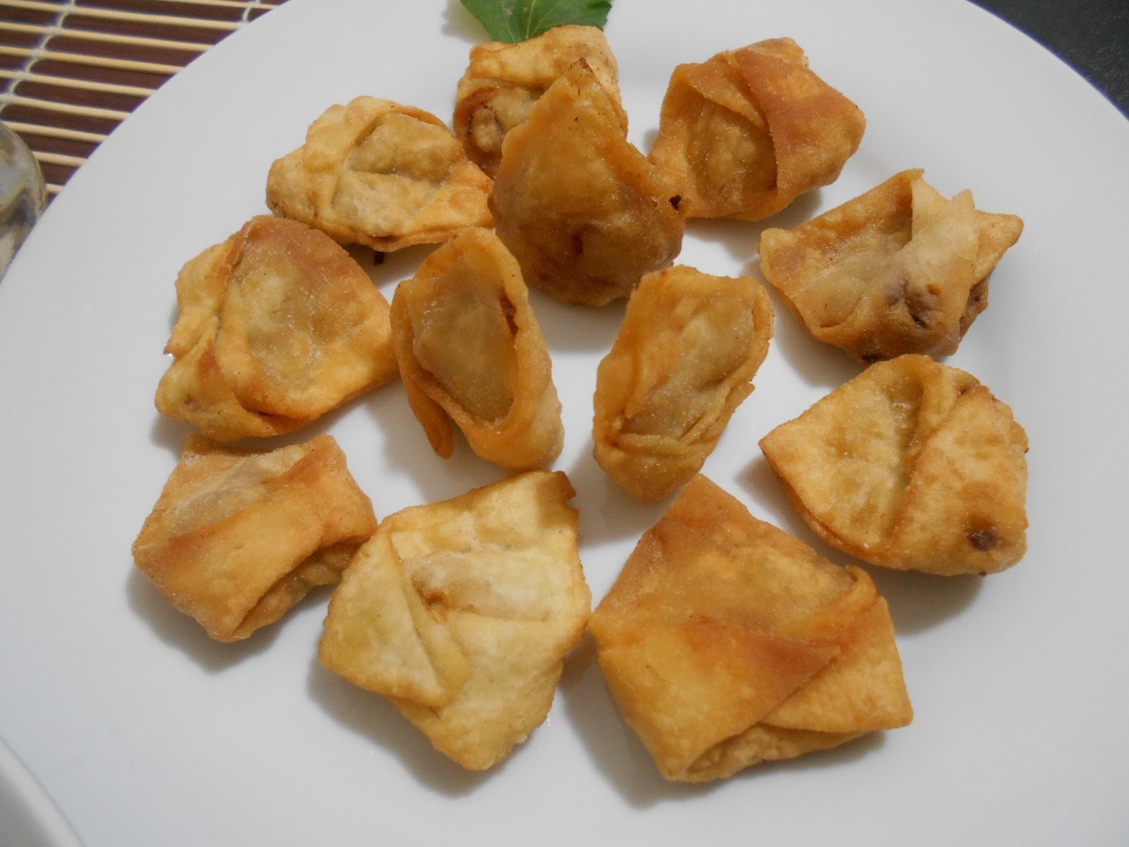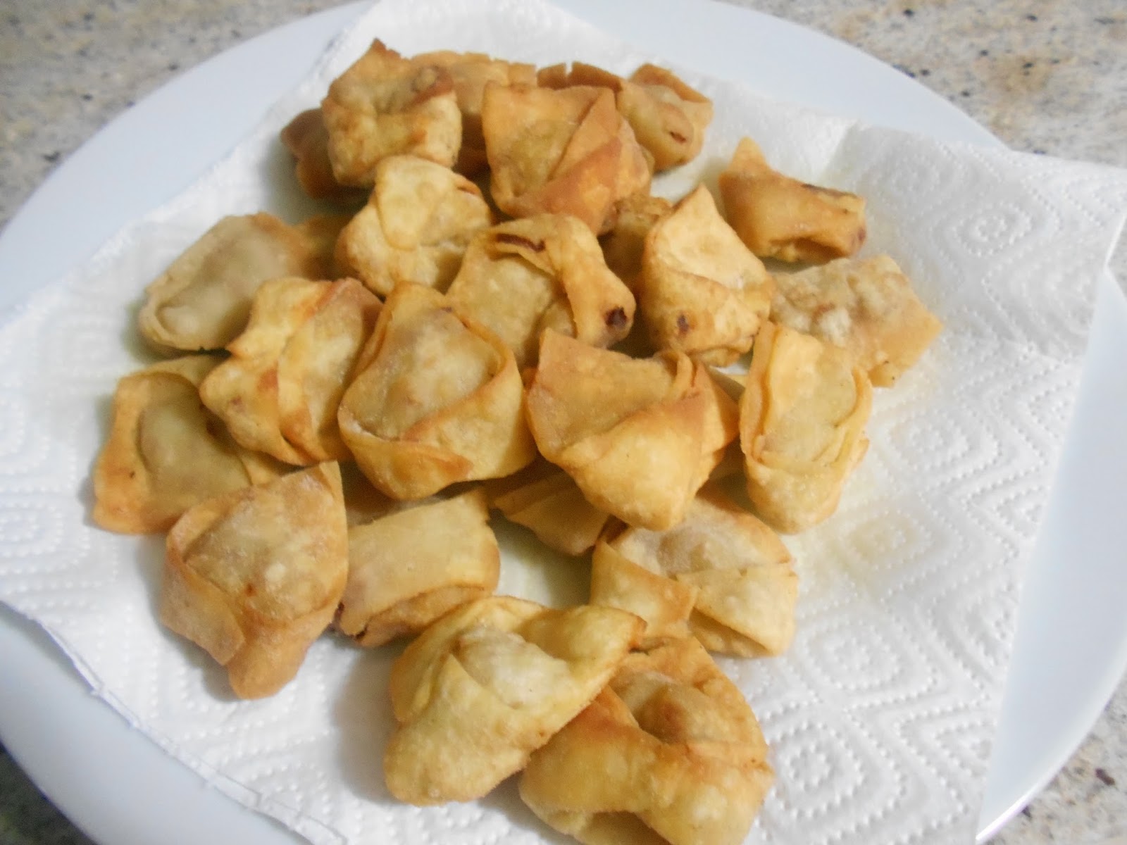 Listos los wonton fritos de cerdo, aptos para celiacos