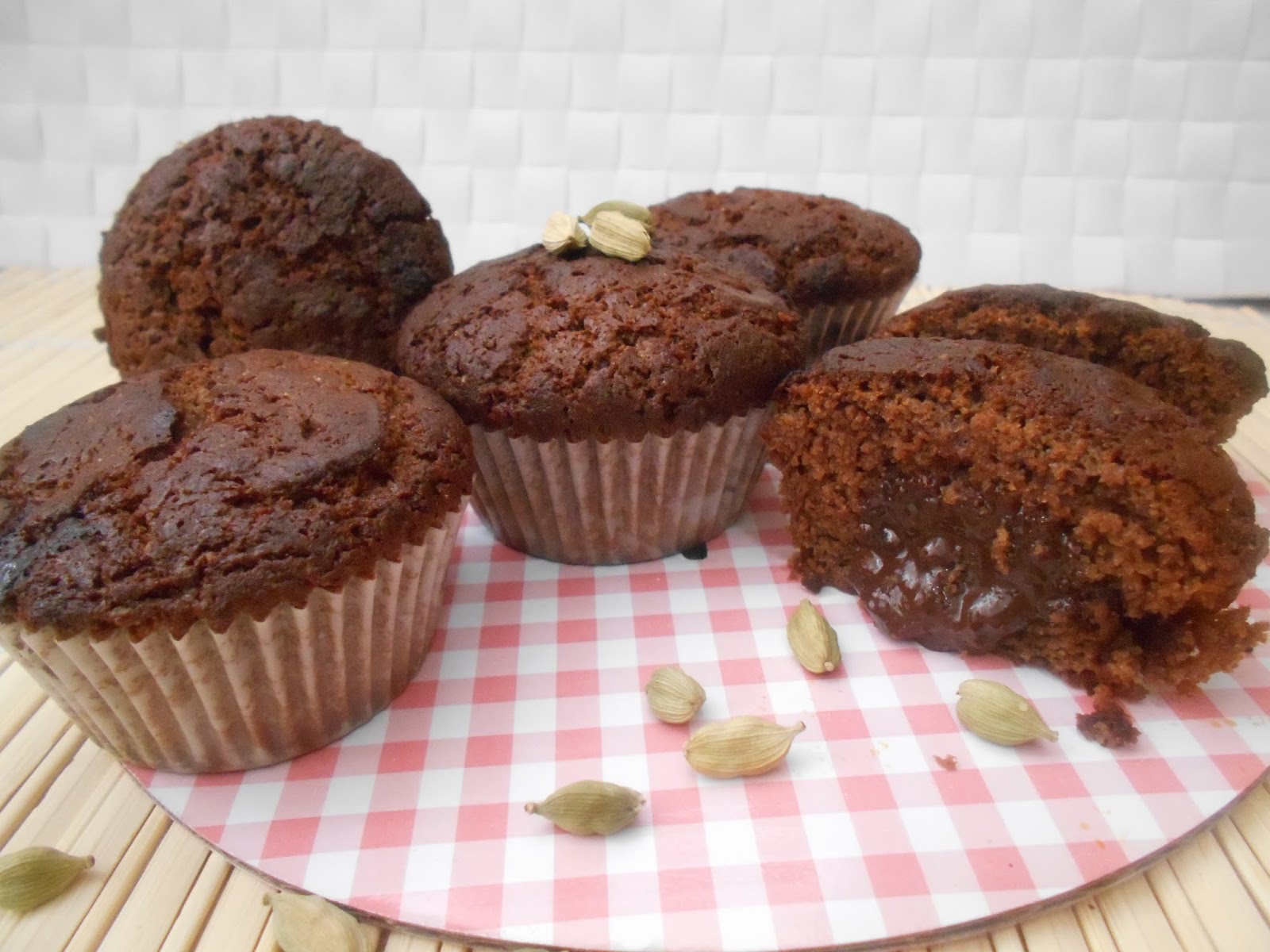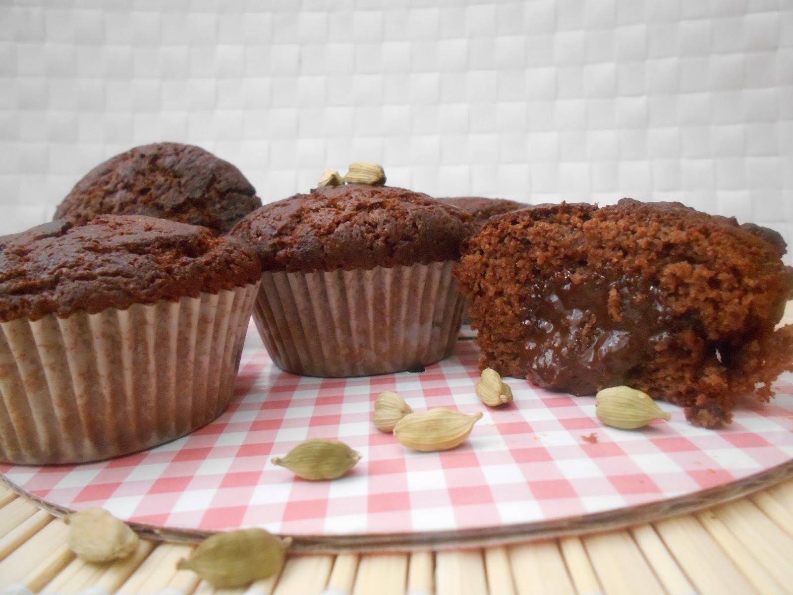 MUFFINS DE CHOCOLATE Y CARDAMOMO RELLENOS DE CHOCOLATE