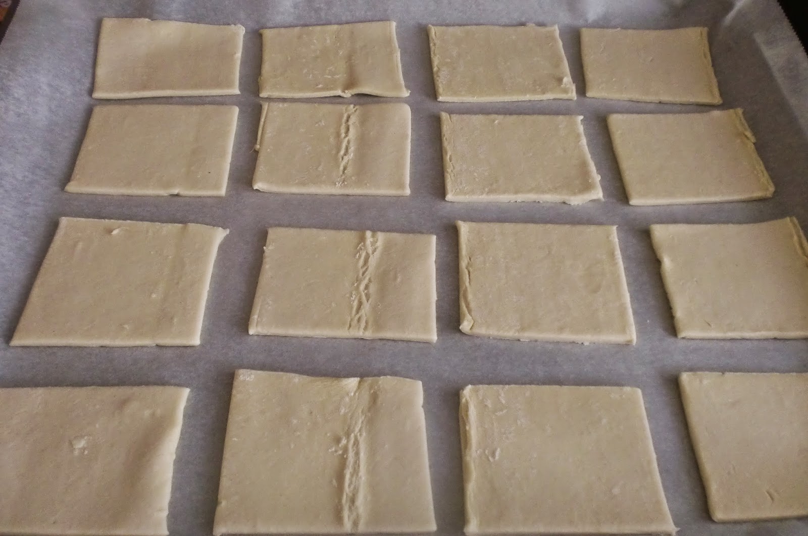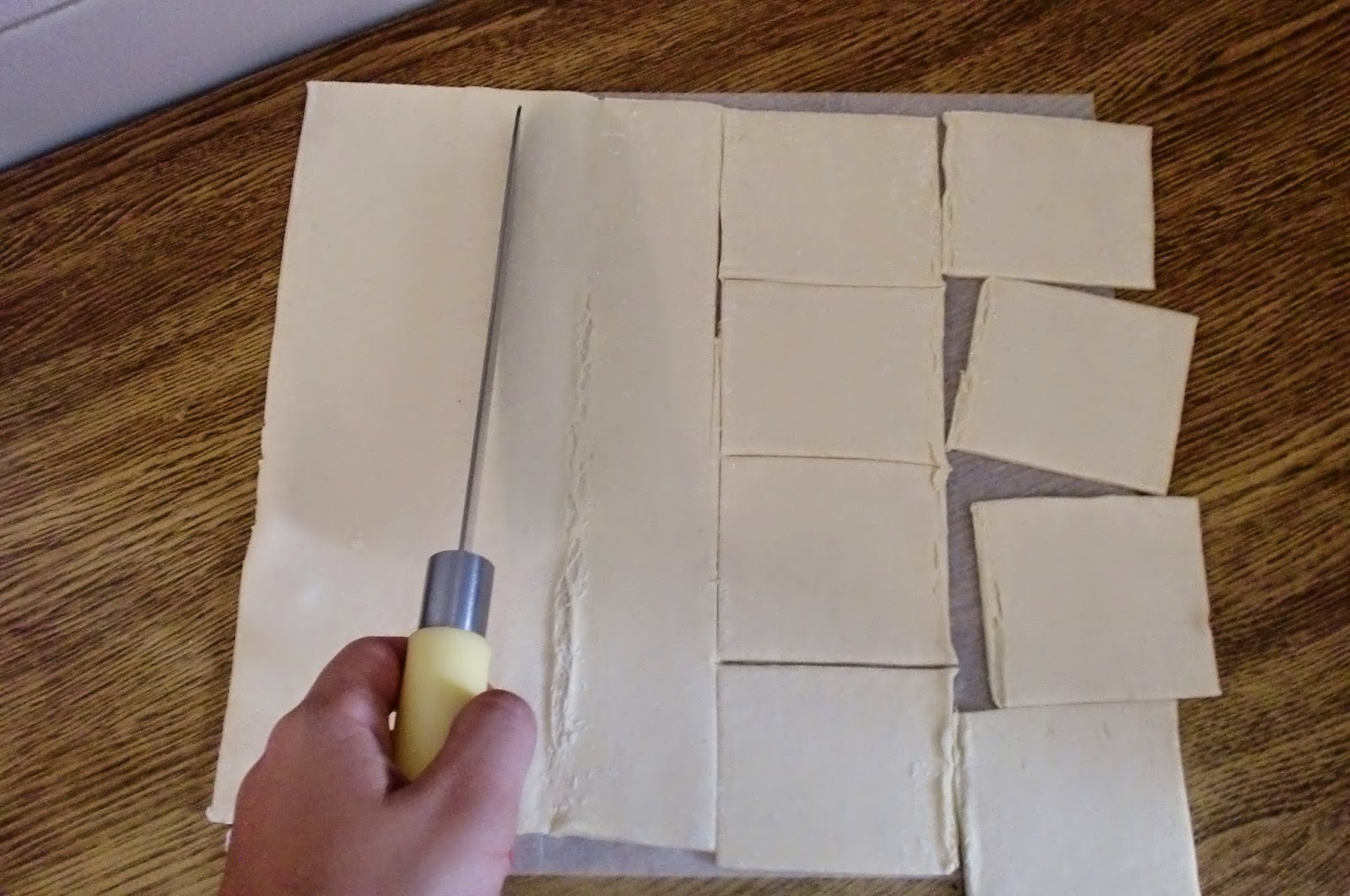 Cogemos la lamina de hojaldre la cortamos en rectangulos