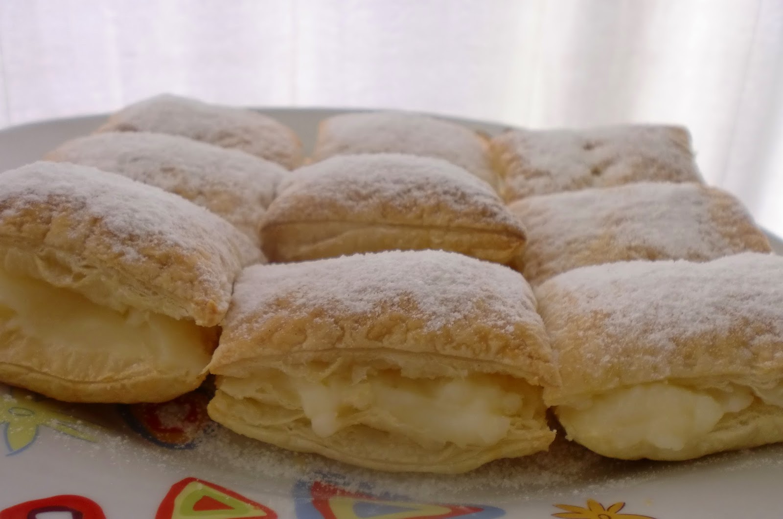 Hoy os traigo la receta de los tradicionales Miguelitos de crema pastelera