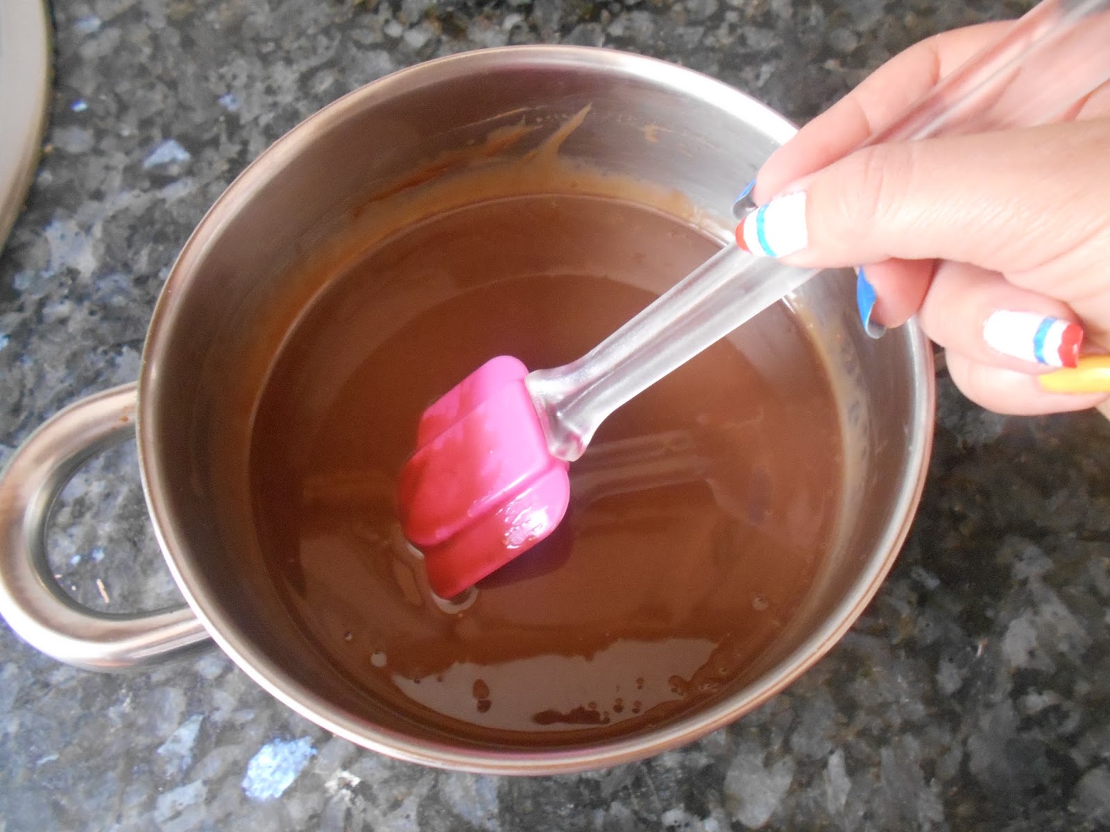 Preparamos la cobertura de chocolate con leche.