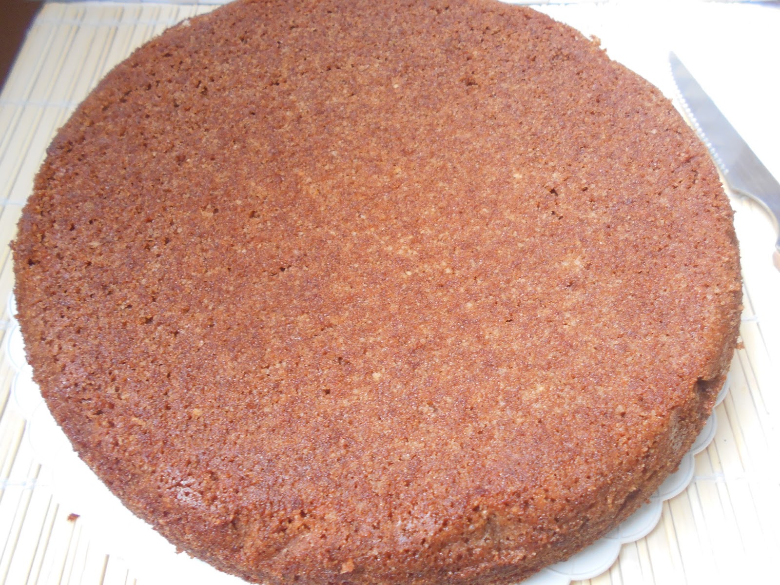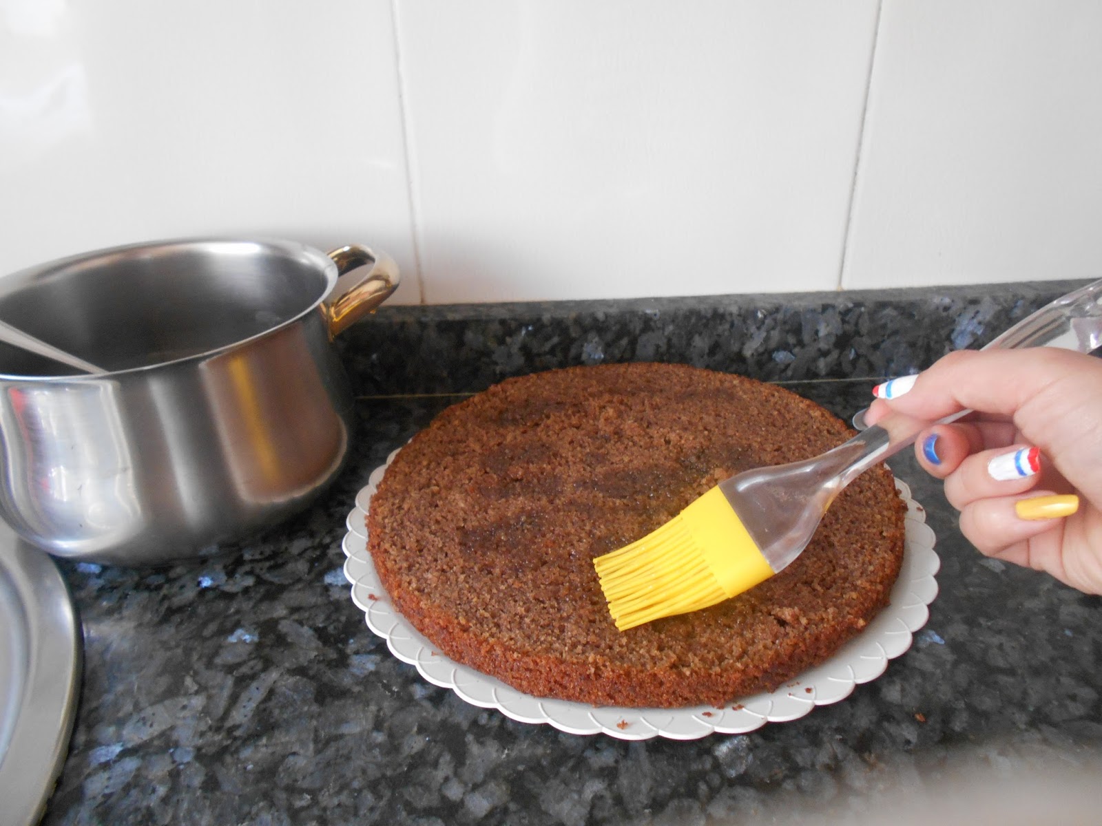 Bañamos ligeramente el bizcocho con el almibar, ambas partes, no lo caleis mucho que ya veréis lo esponjoso que es.
