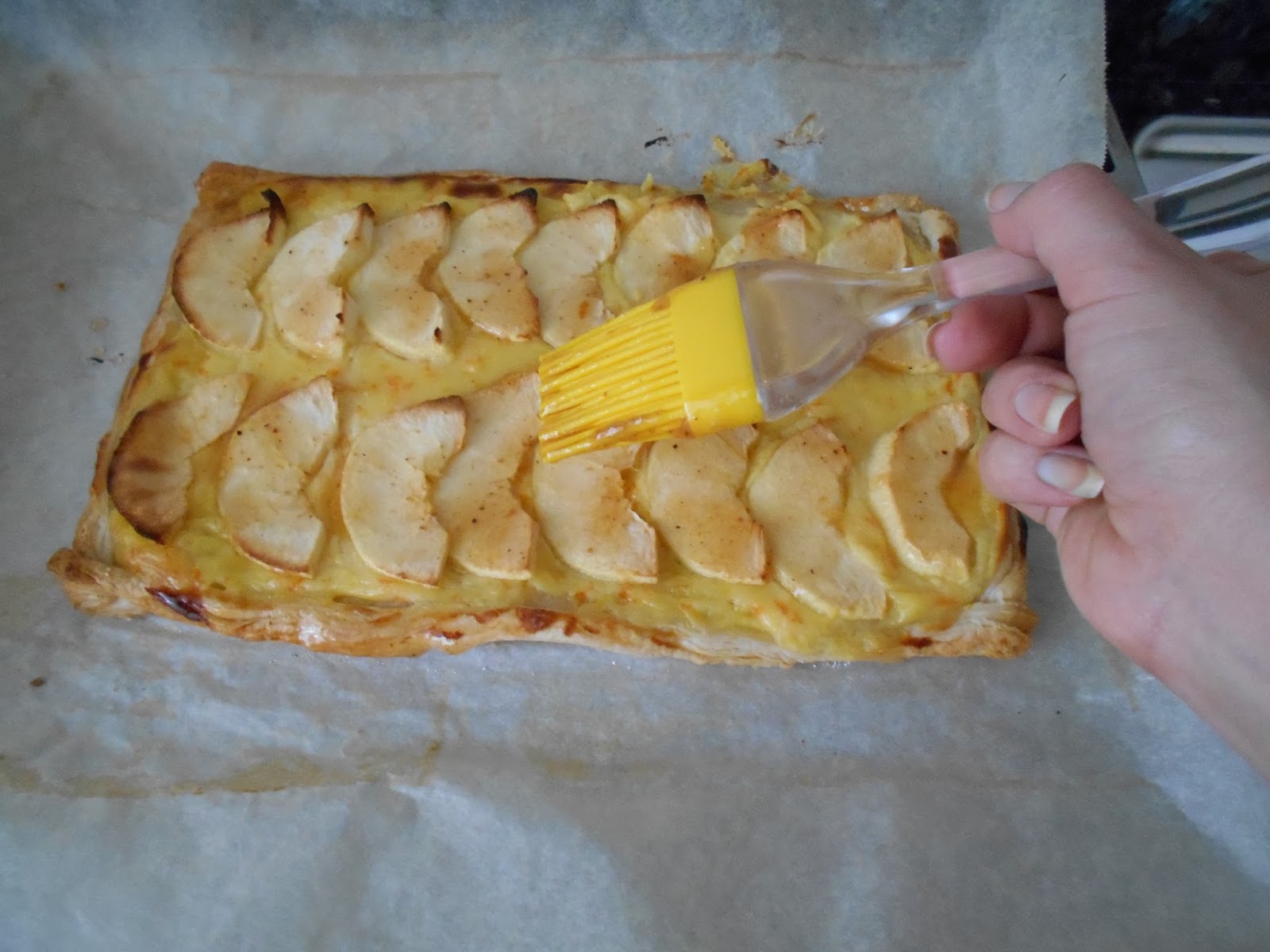 Antes de que enfrie la pintamos con mermelada (puede ser de albaricoque, uva, melocoton…)