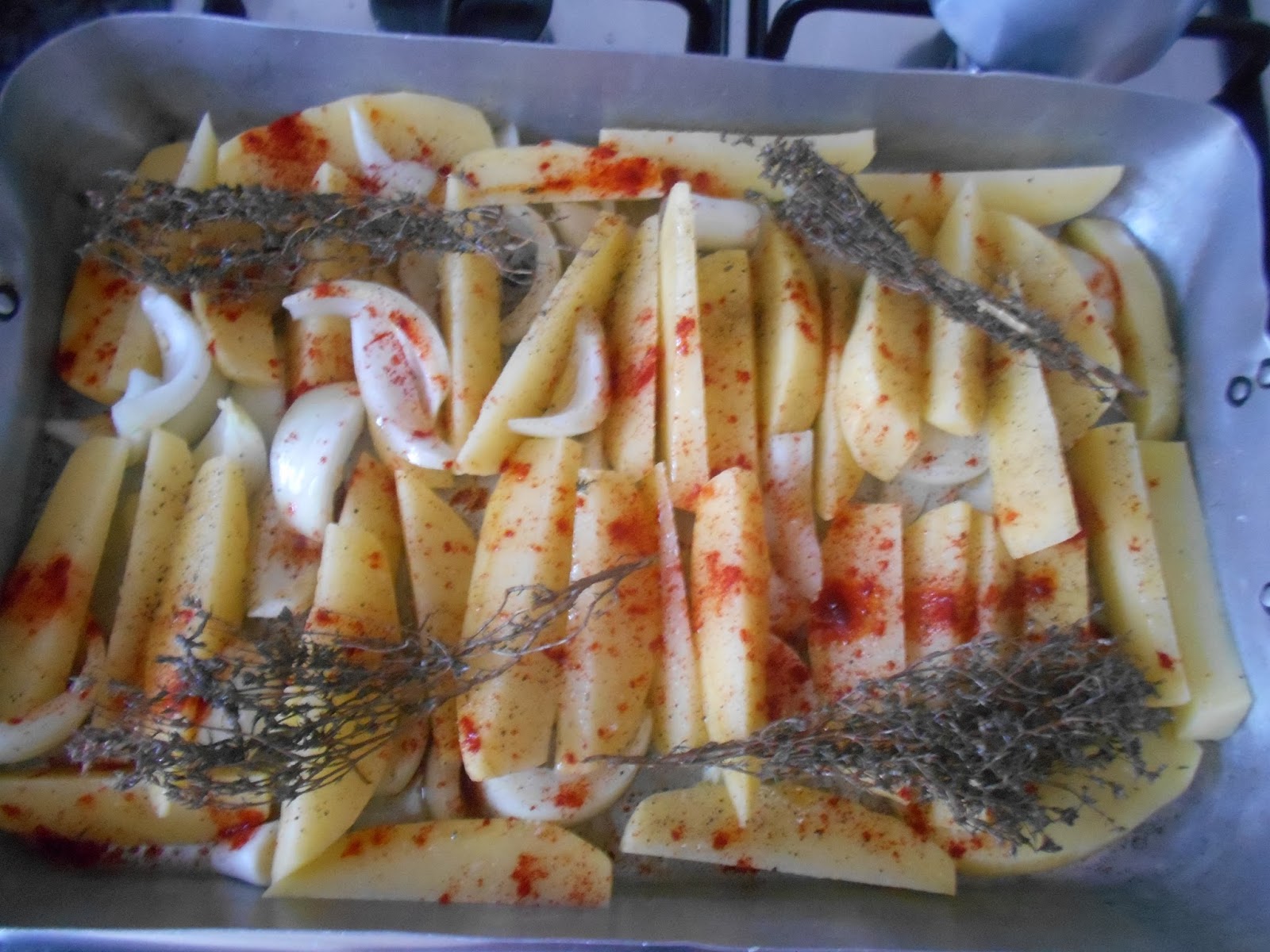 Condimentamos con sal, pimienta, pimenton, el tomillo, aceite y vertemos el vino blanco