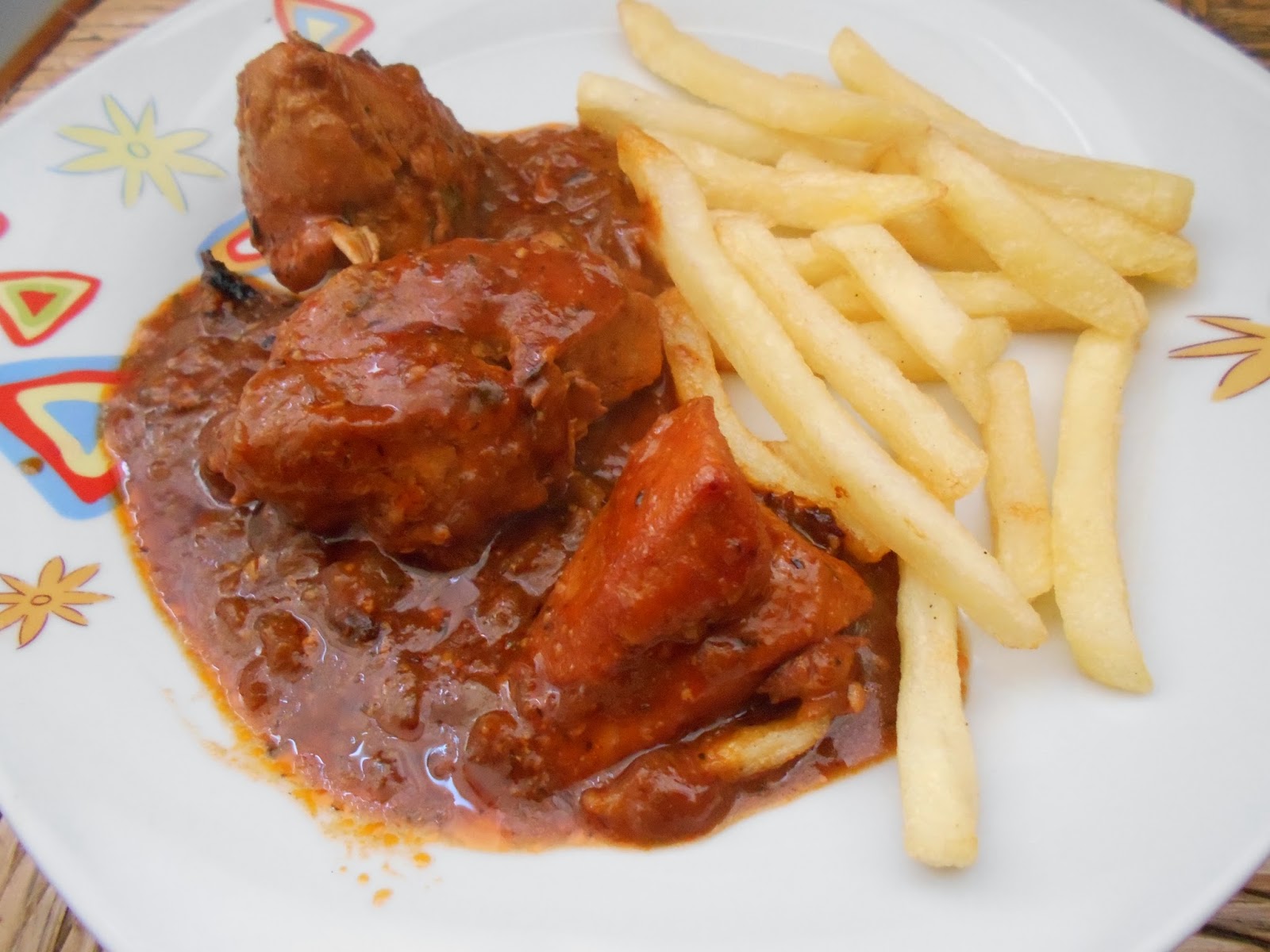 Sí el pollo guisado esta rico con esta mezcla de carne y marisco queda de lujo