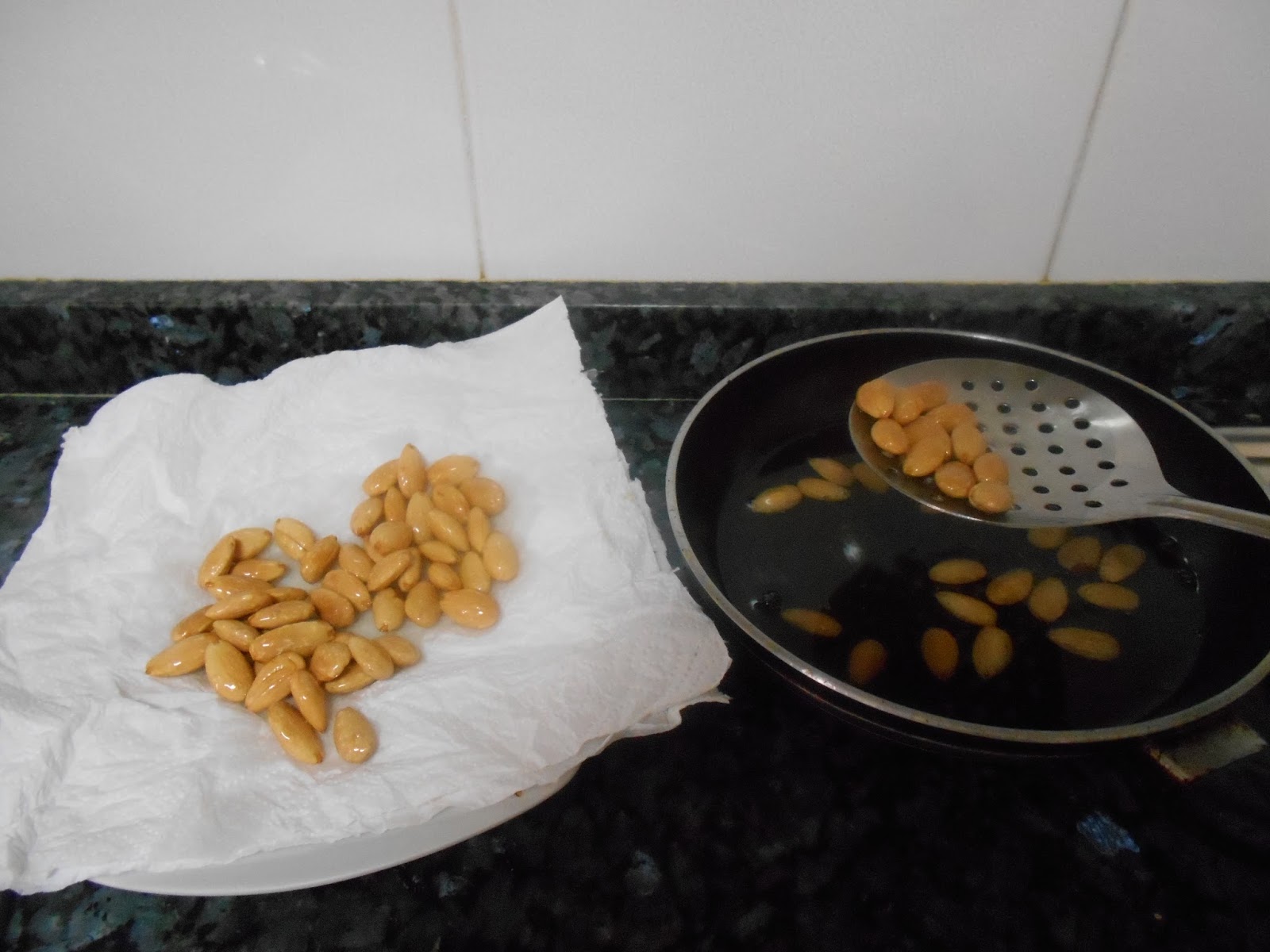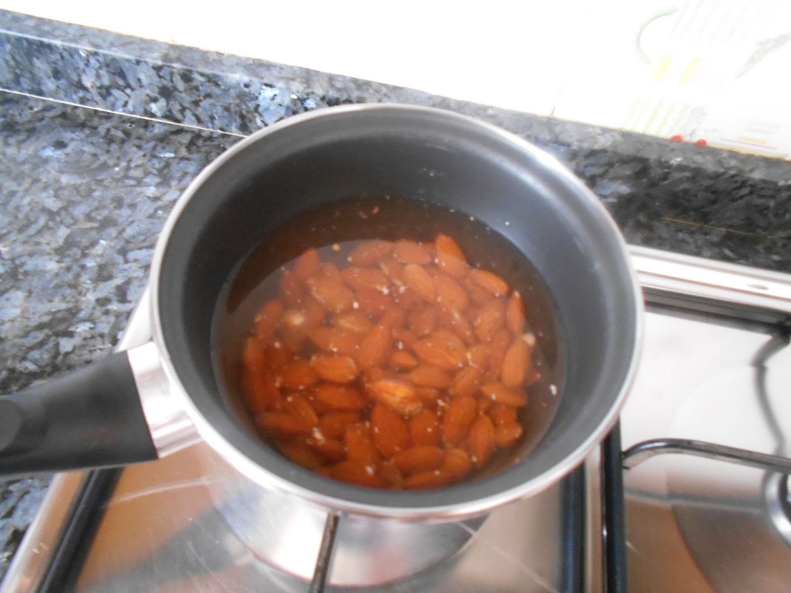 Escaldamos las almendras en agua unos 5min para poder pelarlas