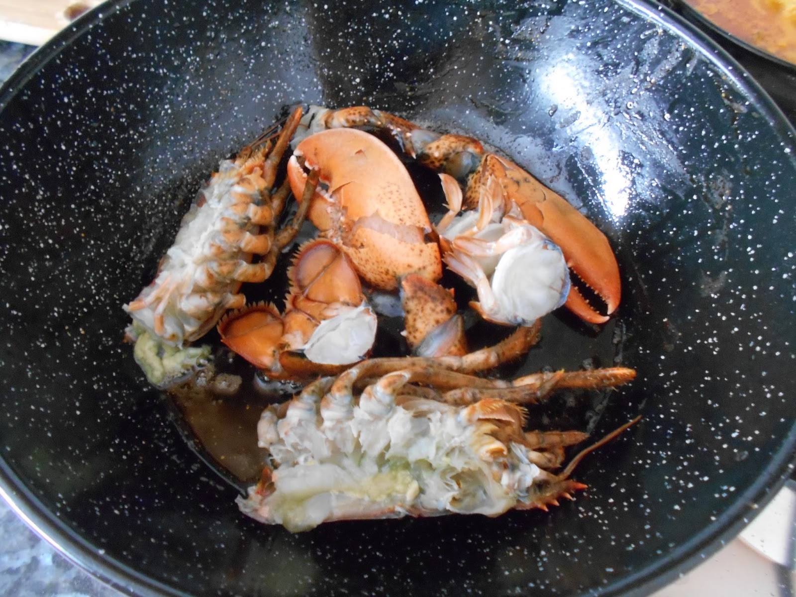 En ese mismo aceite de la paella doramos ligeramente el bogavante.