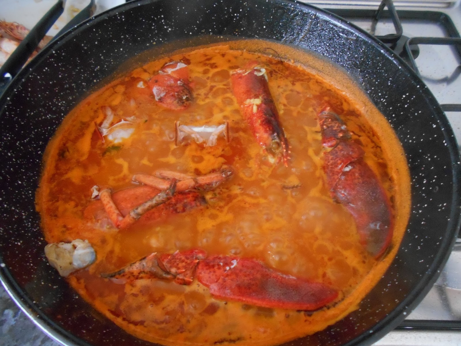 Añadimos el bogavante y dejamos hervir 5 min más.