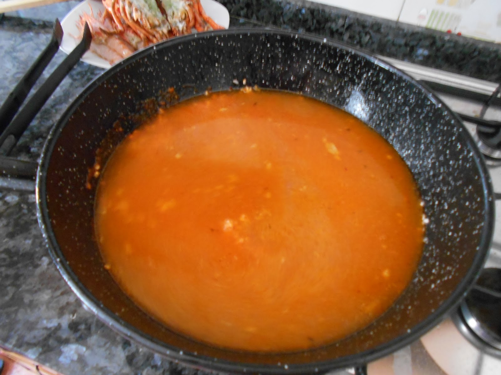 añadimos los gambones y dejamos 1 o 2 minutos.