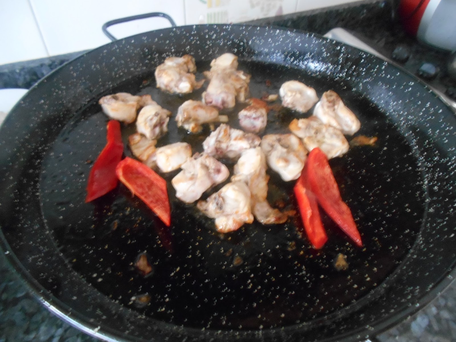 Añadimos el conejo y los trozos de pimiento