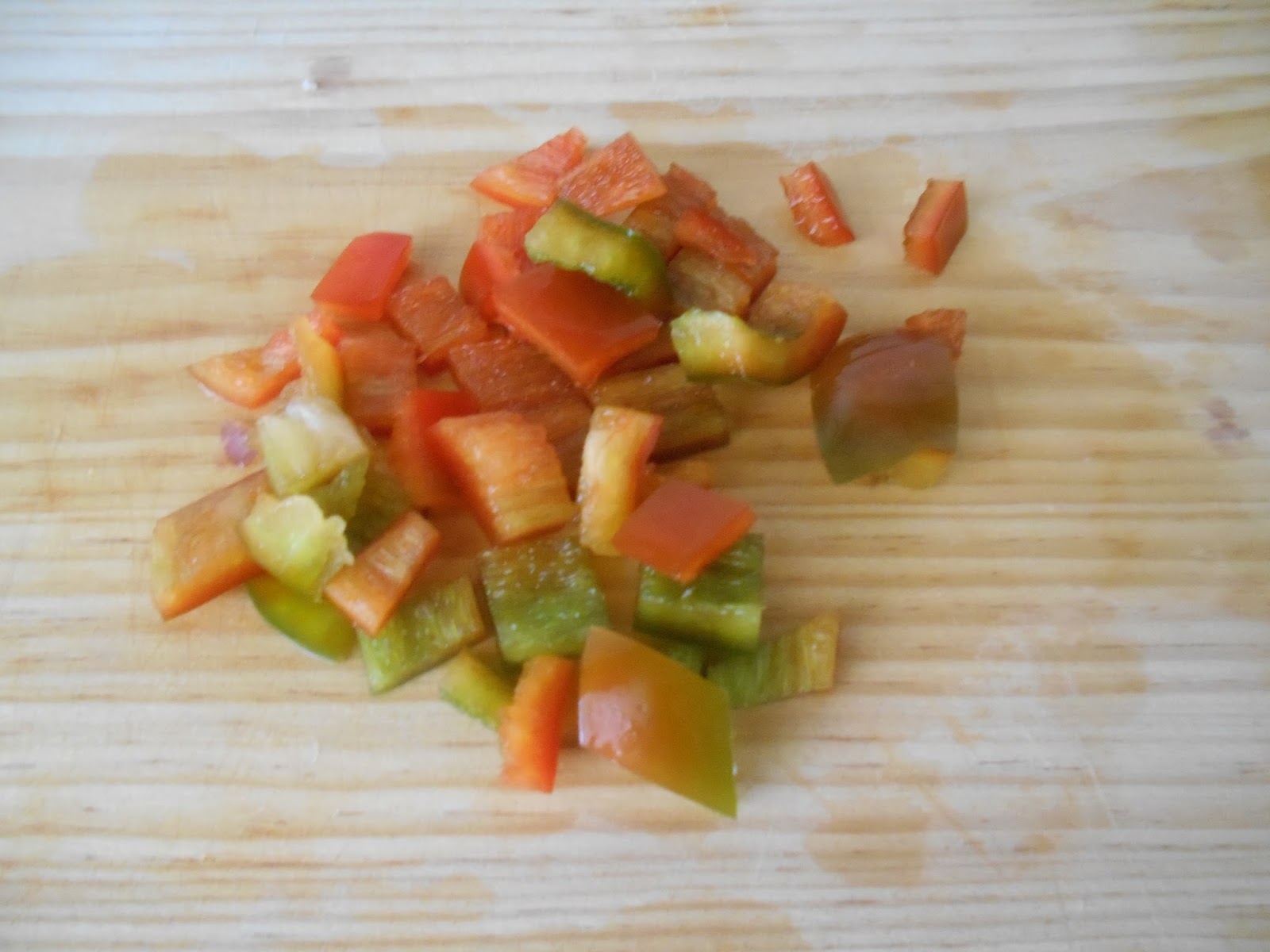 Cortamos la cebolla y el pimiento en trozos pequeños.