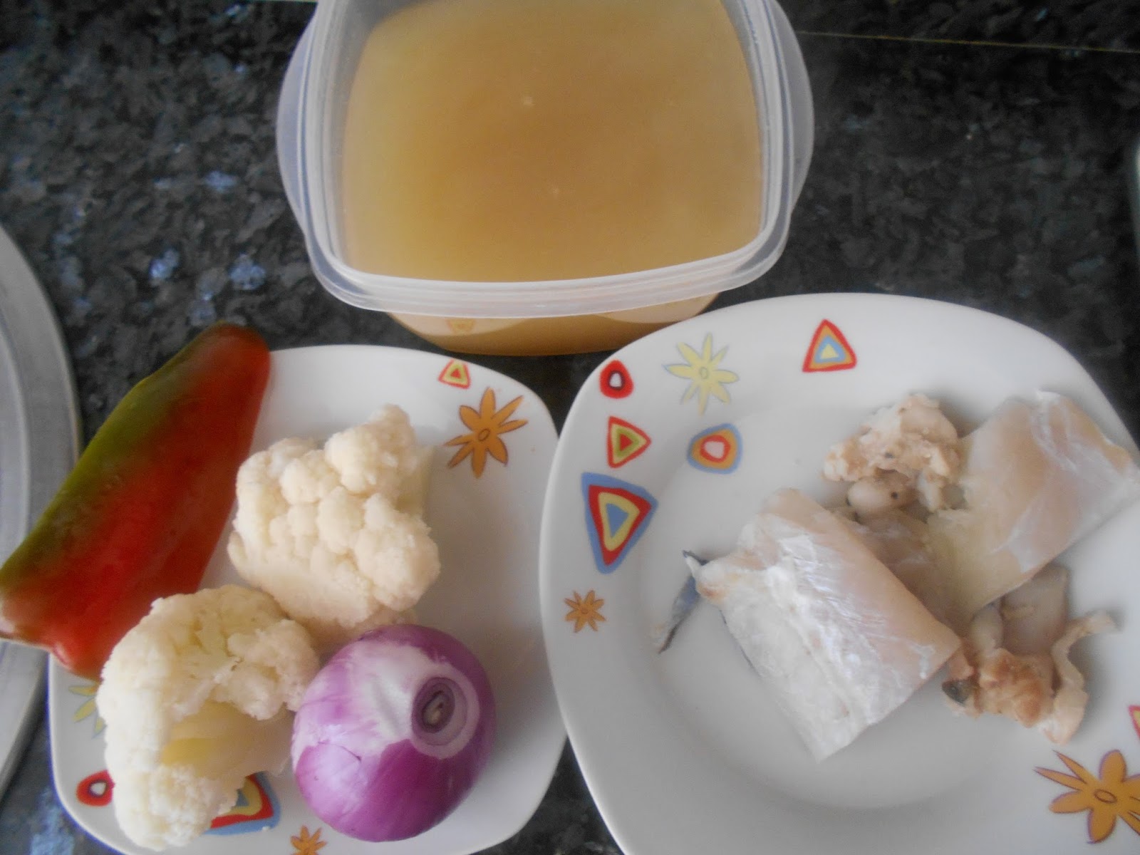 900ml de caldo de pescado (este esta hecho con cabeza y espinas de bacalao)