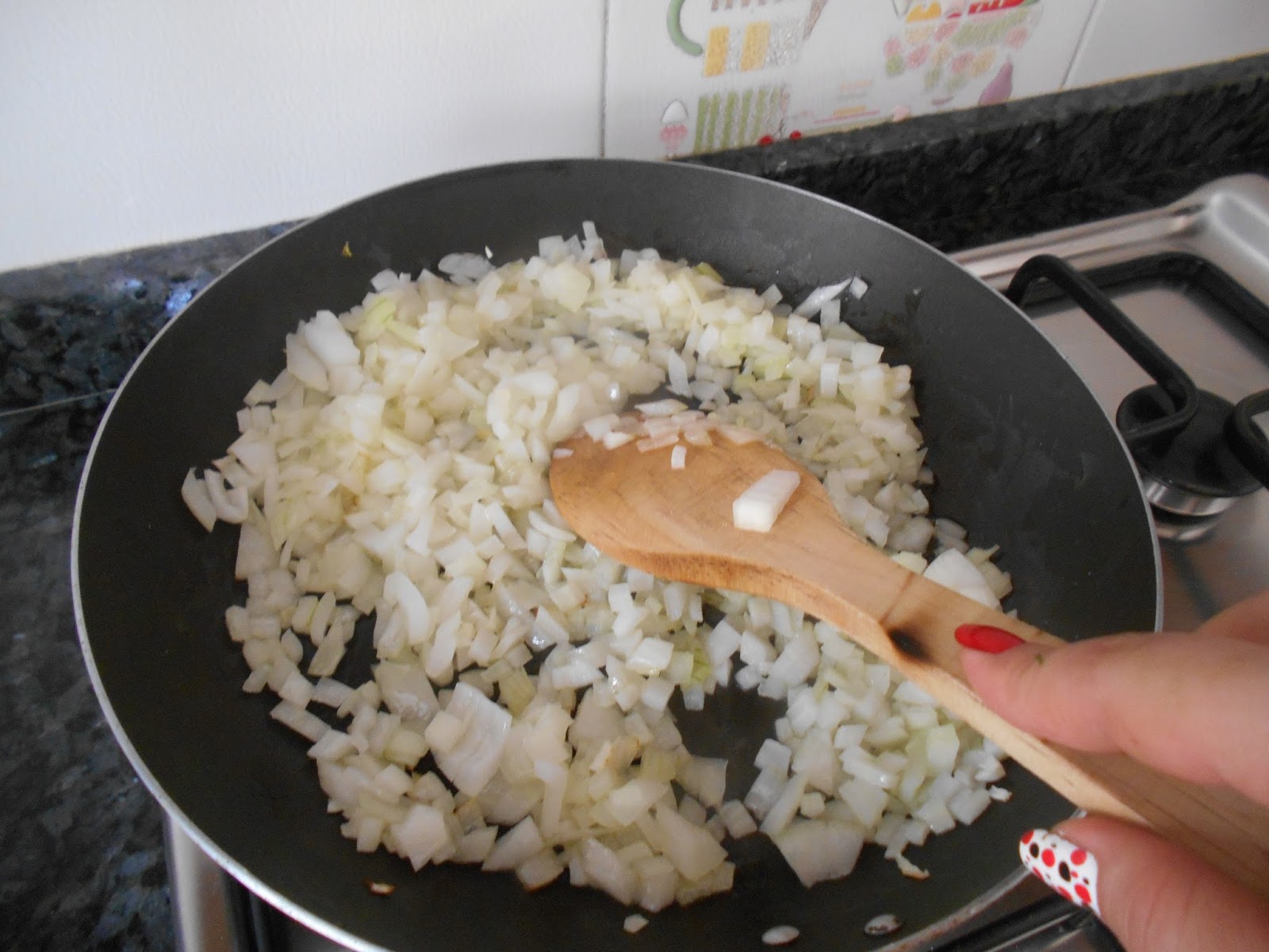 Picamos la cebolla muy finita. En una sartén con aceite pochamos la cebolla.
