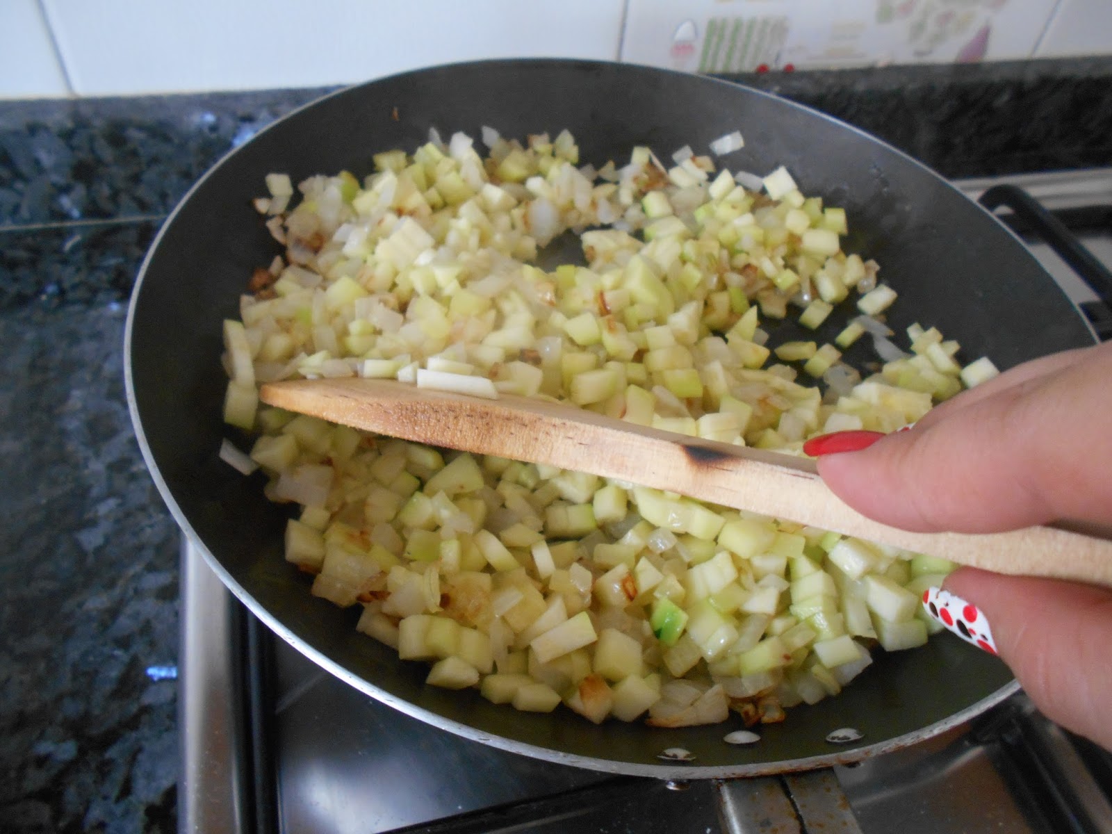 Pelamos y cortamos el calabacin en trocitos pequeños.