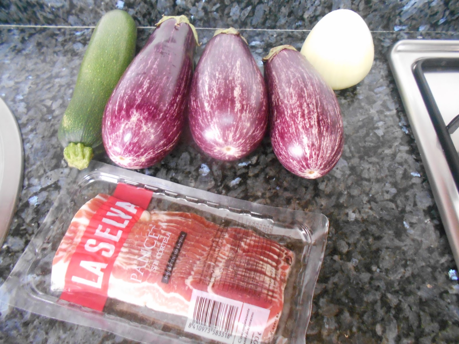 BERENJENAS RELLENAS DE BACON Y CALABACIN