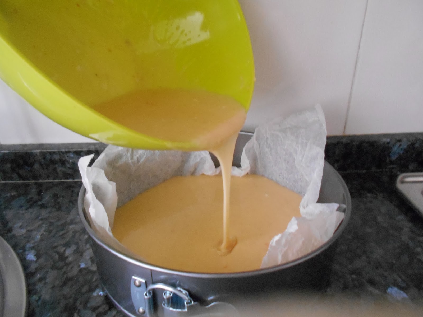 Engrasamos un molde con papel o mantequilla y vertemos la mezcla.