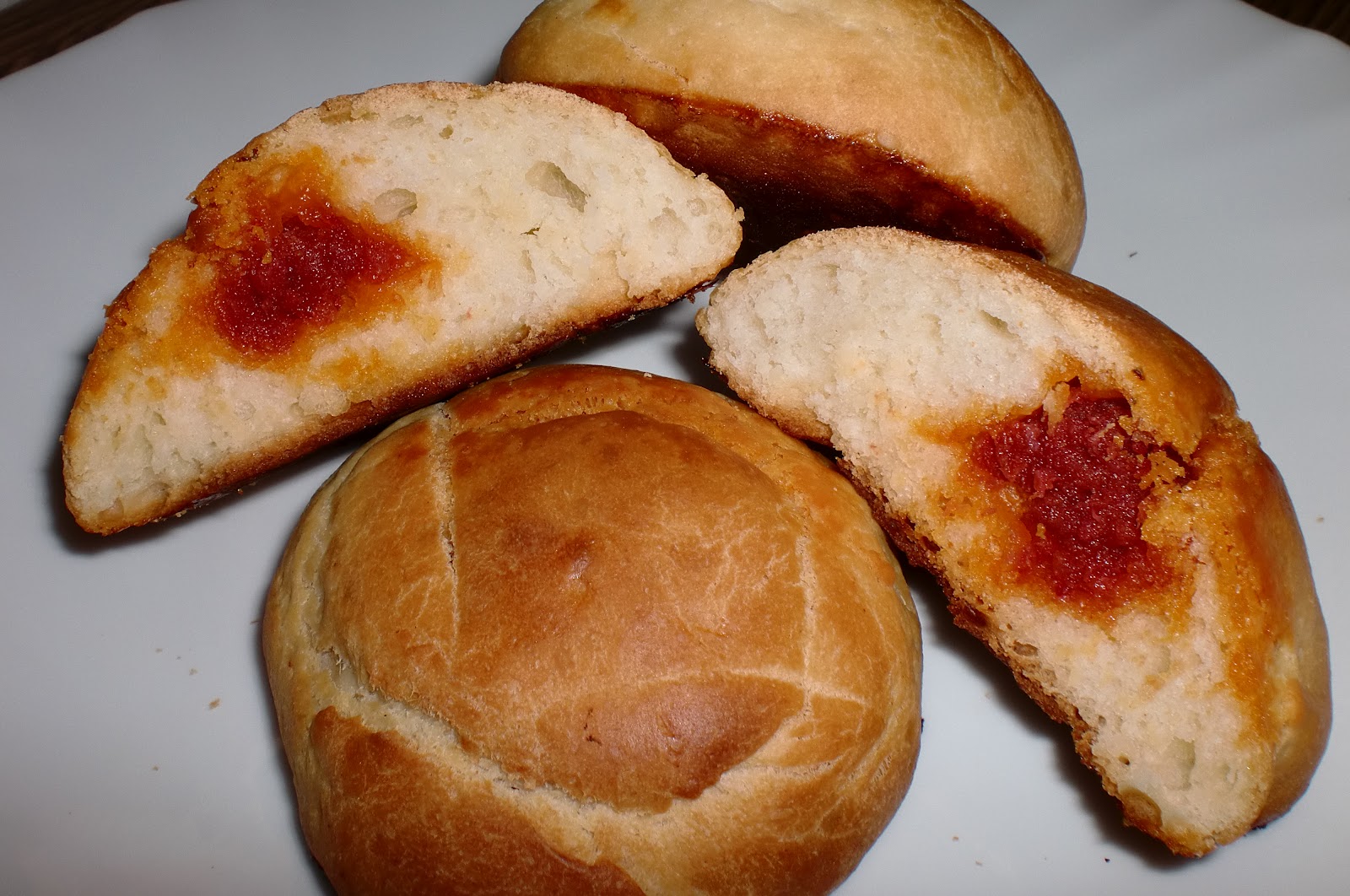 Estos que os presento hoy los he rellenado de chorizos. Peeeerooo he hecho también un poco de trampa… y como tenía un poco de chocolate a 3 les he metido un poco de chocolate jejejje.