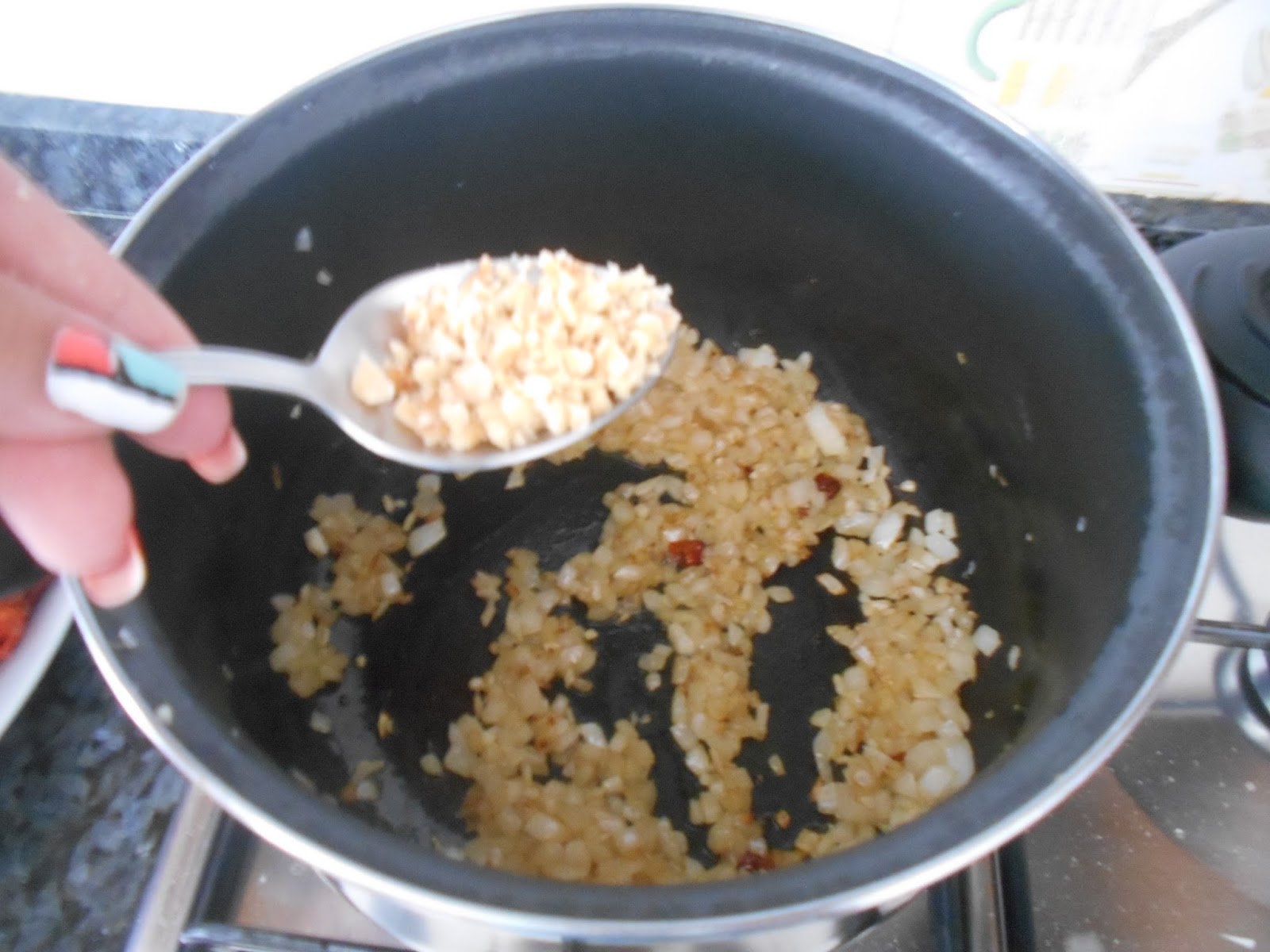 Agregamos las avellanas picadas y rehogamos ligeramente.