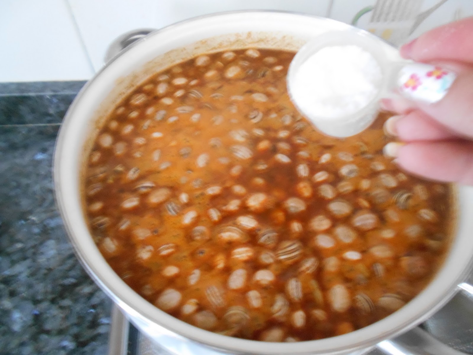 Luego lleno el fregadero de agua, vinagre y sal y froto los caracoles entre si un buen rato. Tiramos el agua y repetimos ese proceso 3 veces.