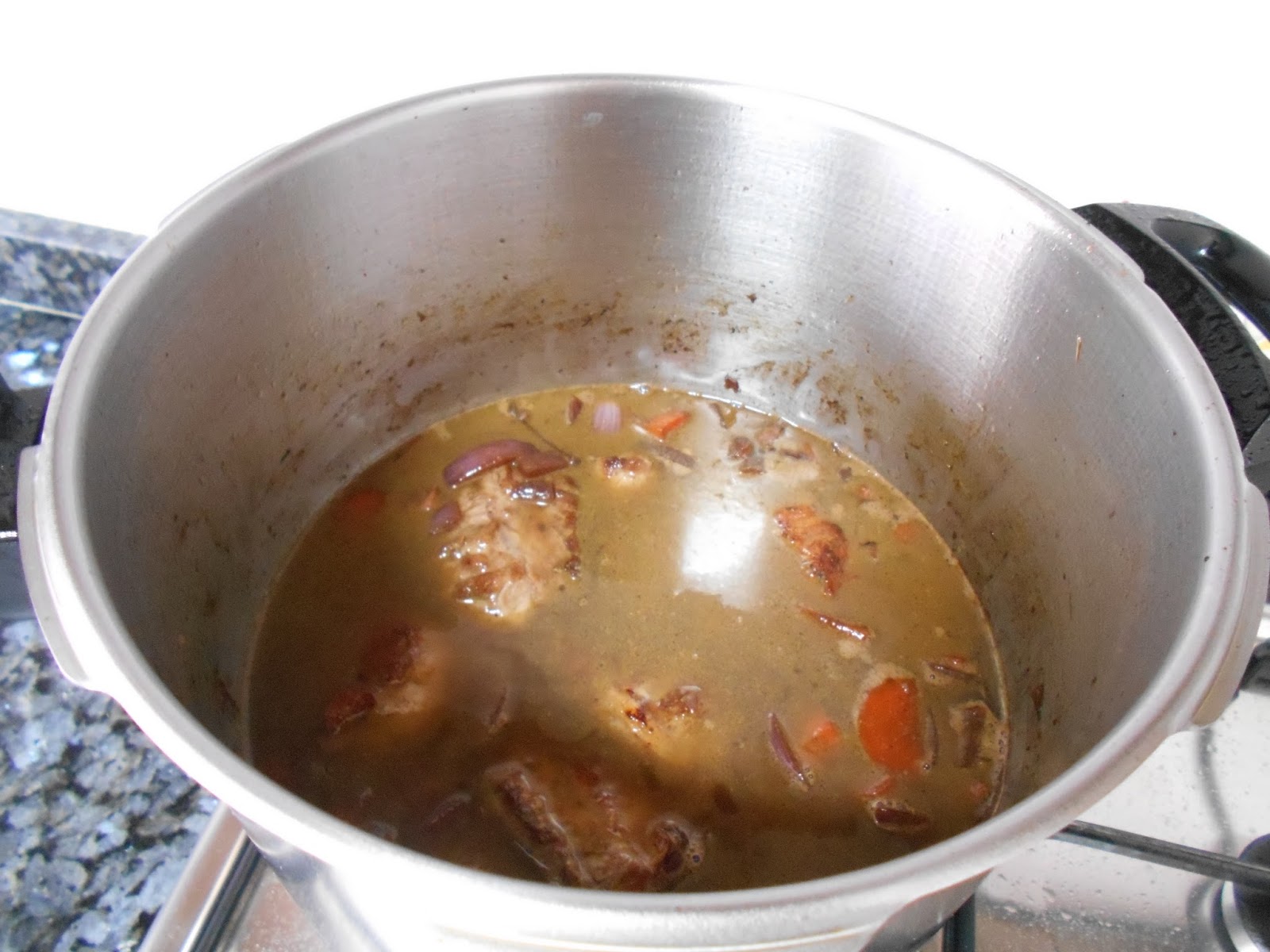 cubrimos bien de agua, que llegue a cubrir las carrilleras ligeramente y dejaremos hervir en la olla expres 30min.