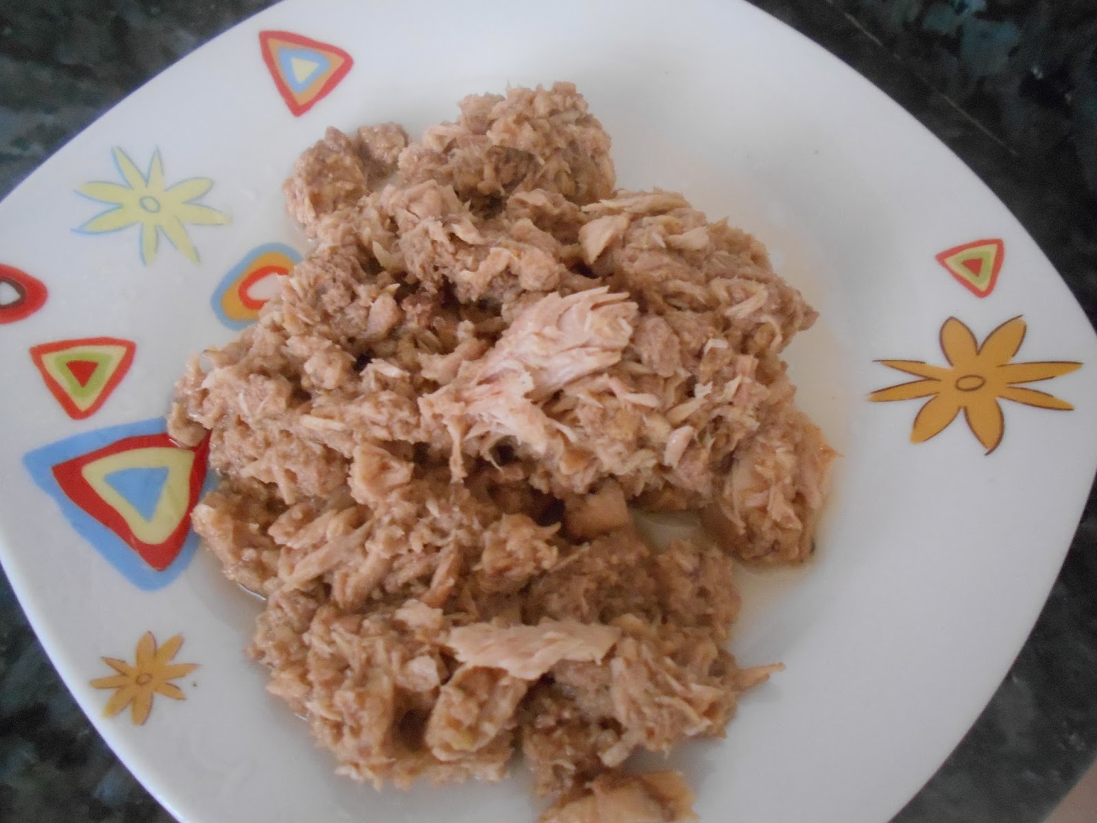 Sacamos del horno. Disponemos el atún por encima (no hace falta esperar a que se enfríe)