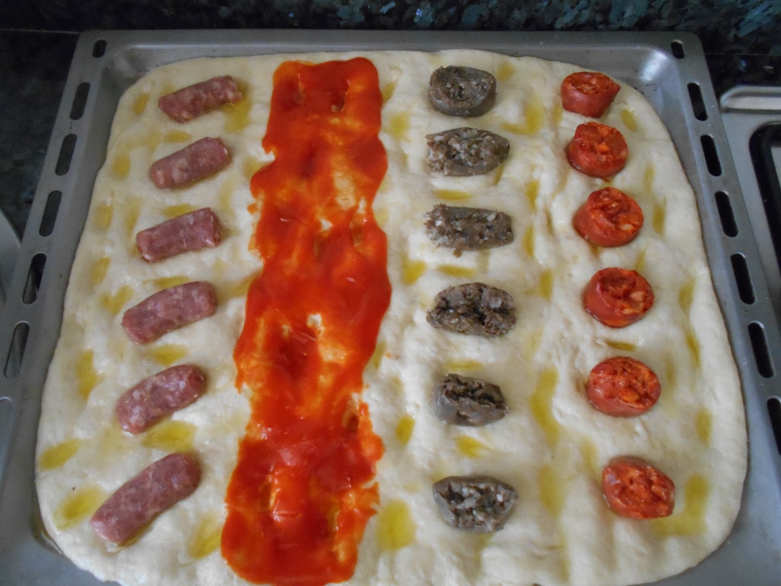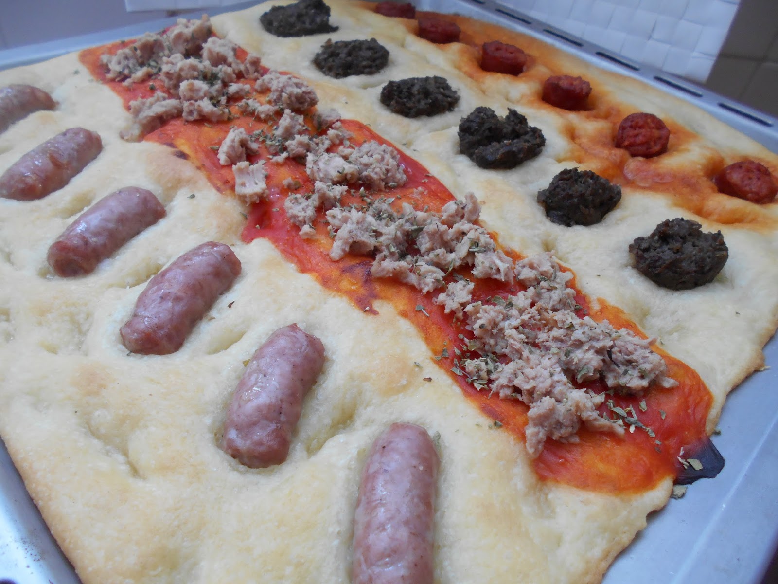 Hoy le he puesto de lo que tenia en casa y más me ha apetecido: salchichas, chorizo, morcilla y atun jejejjeje