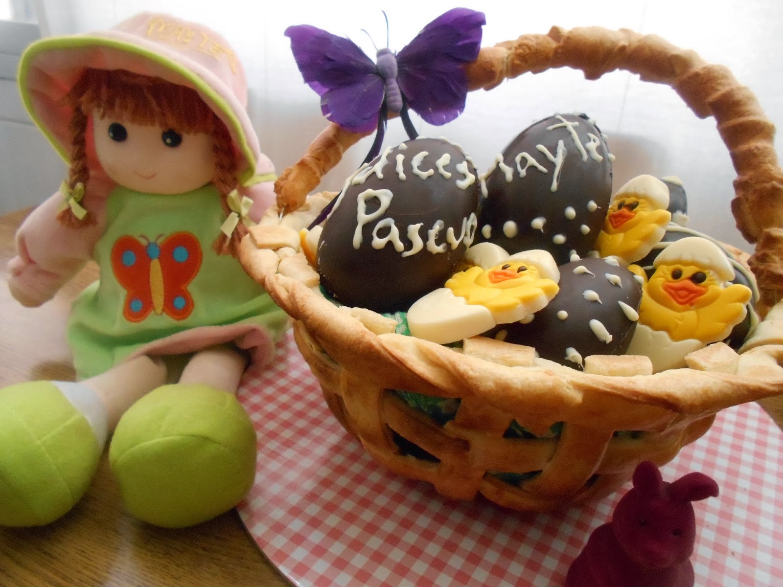 Además yo suelo hacer una CESTA COMESTIBLE para poner los huevos de Pascua de chocolate  aquí  tenéis el  PASO A PASO  para hacer la cesta (pincha en el enlace)