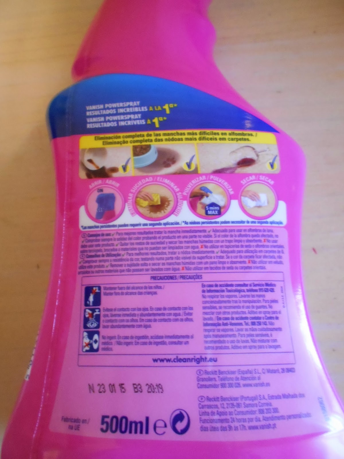 Pues os quiero recomendar un producto que acabo de descubrir, un nuevo aliado en la limpieza Vanish Oxi Action alfombras y tapicerías spray.