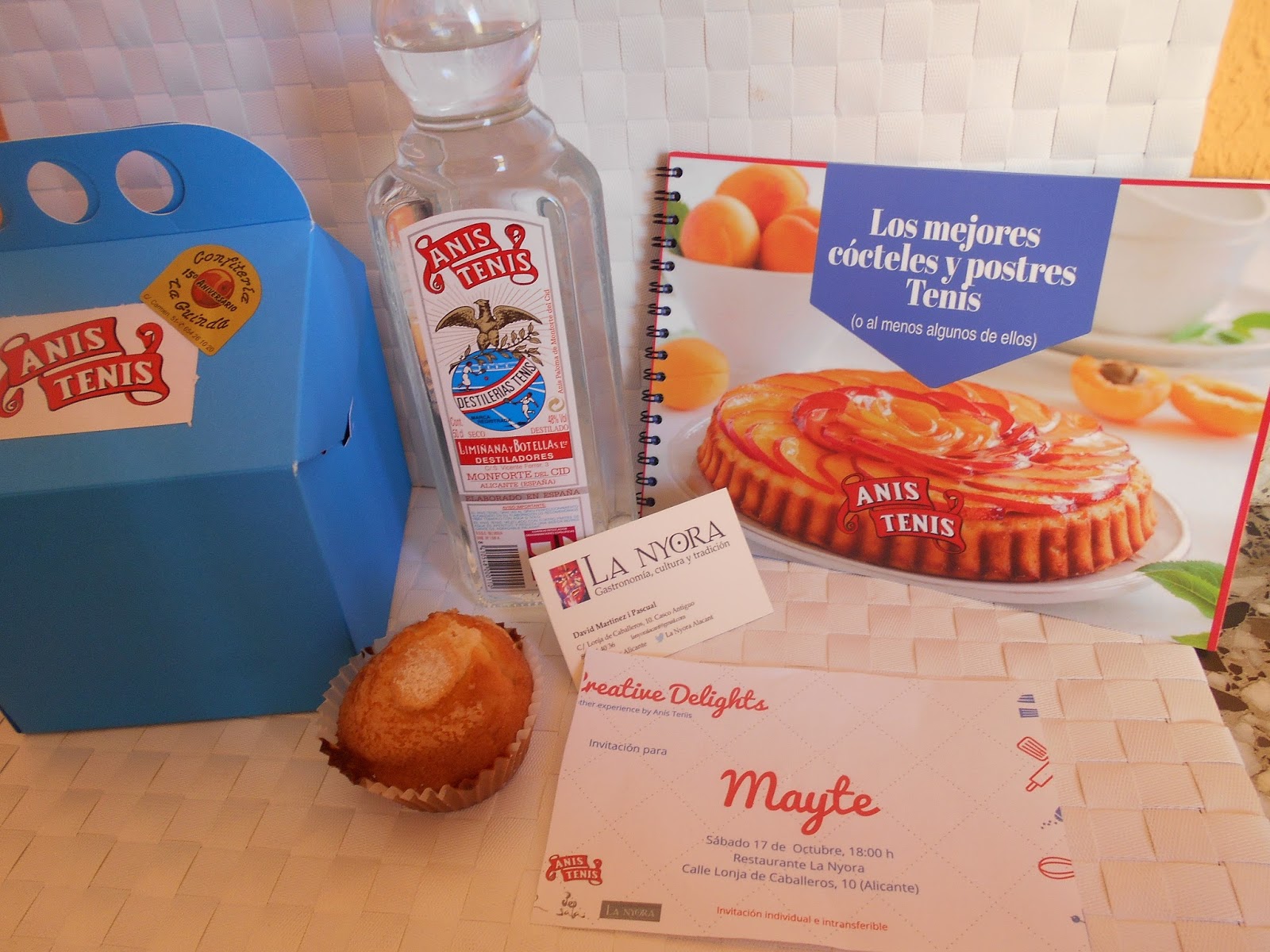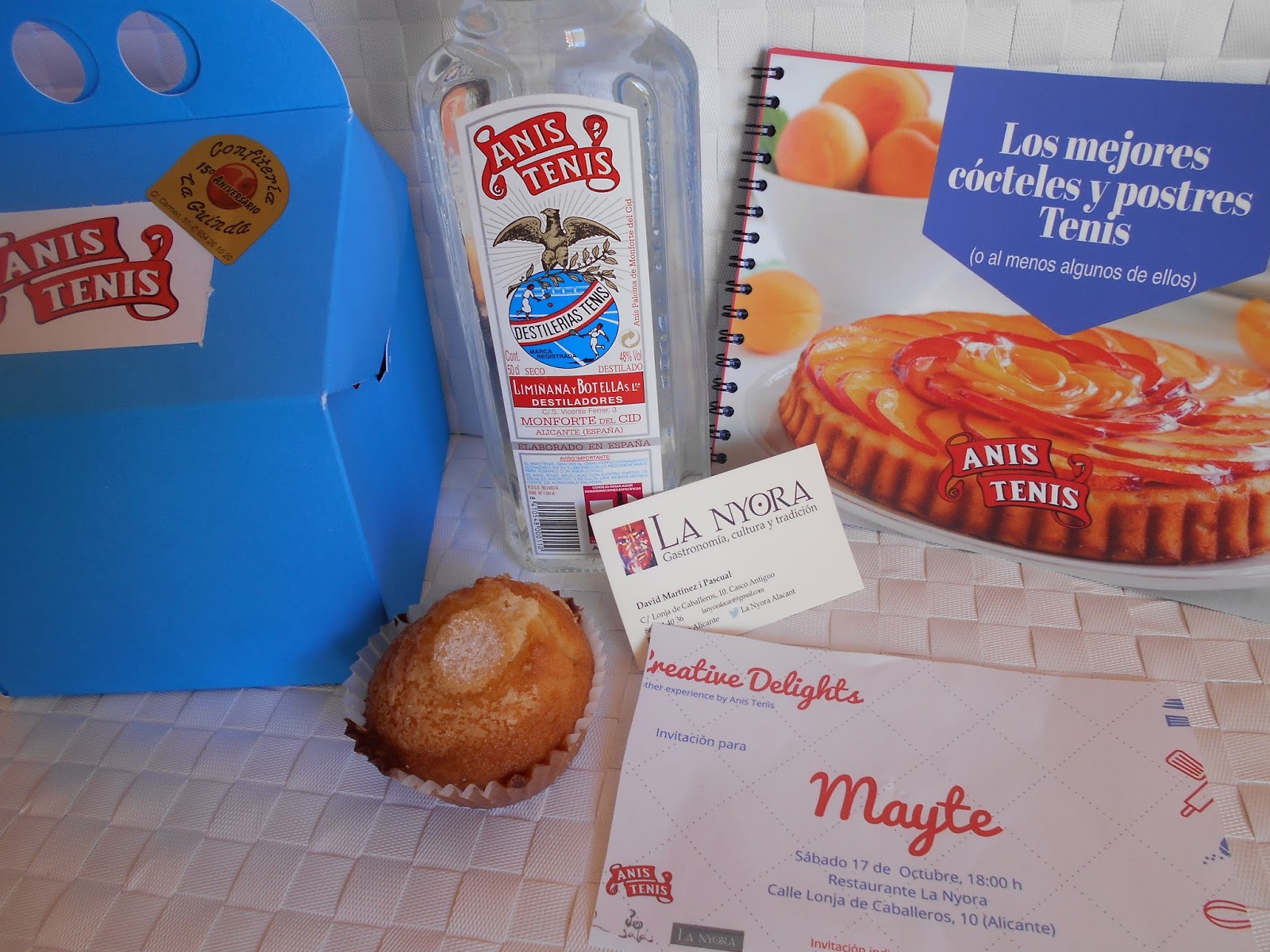 Y si ya el todo era poco… nos obsequiaron como podreis ver con una botella de anis y una cajita sorpresa… que contenia una deliciosa magdalena de anis (he dicho contenía no podia resistirme y jajja ya me la he comido)
