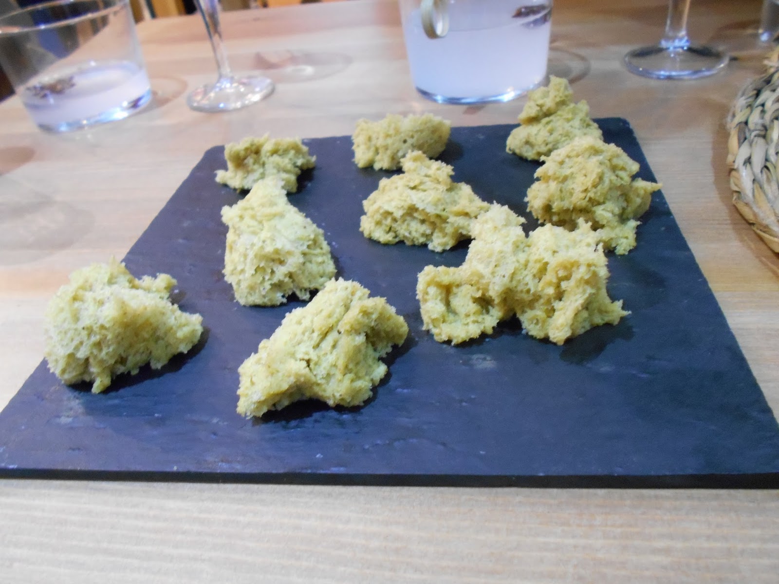 Bizcocho de pistacho: lo preparó con un sifón. Suave y delicioso. Acompañaba perfecto a las peras con menta