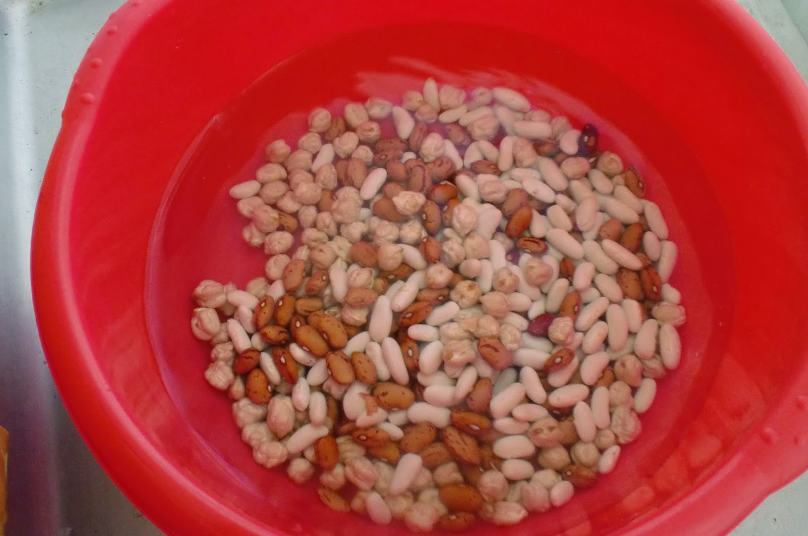 Dejamos la noche de antes: todas las legumbres (EXCEPTO las lentejas, que de como sabeis no es necesario) a remojo