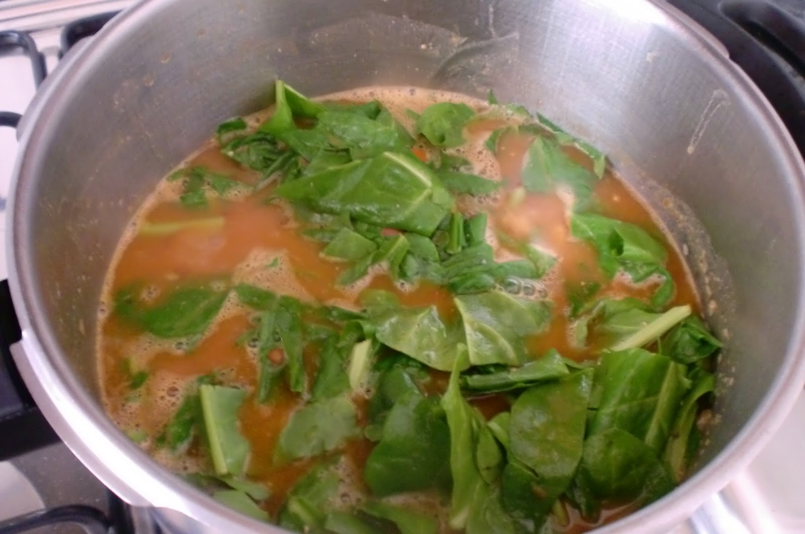 A continuacion agregamos el arroz y las acelgas que necesitarán 20 min. aproximadamente, con la olla sin cerrar