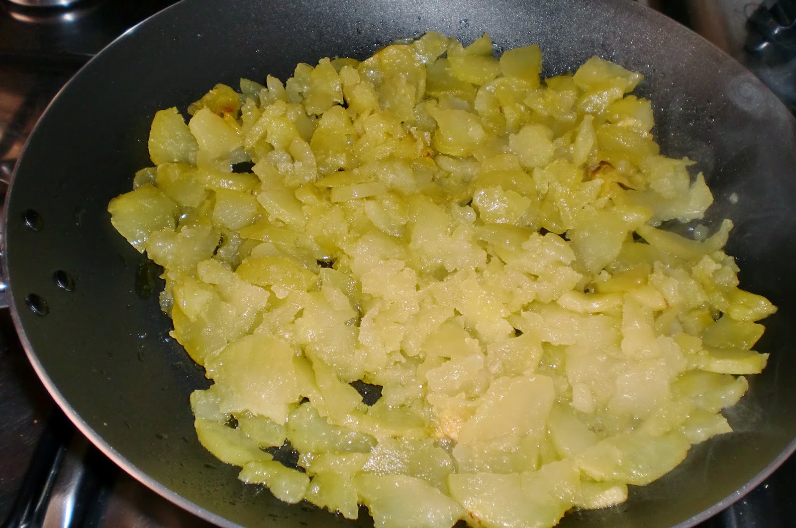 Truco: Si la tortilla gusta con las patatas más desechas puede ir desaciéndose la patata con la rasera mientras se mueve.