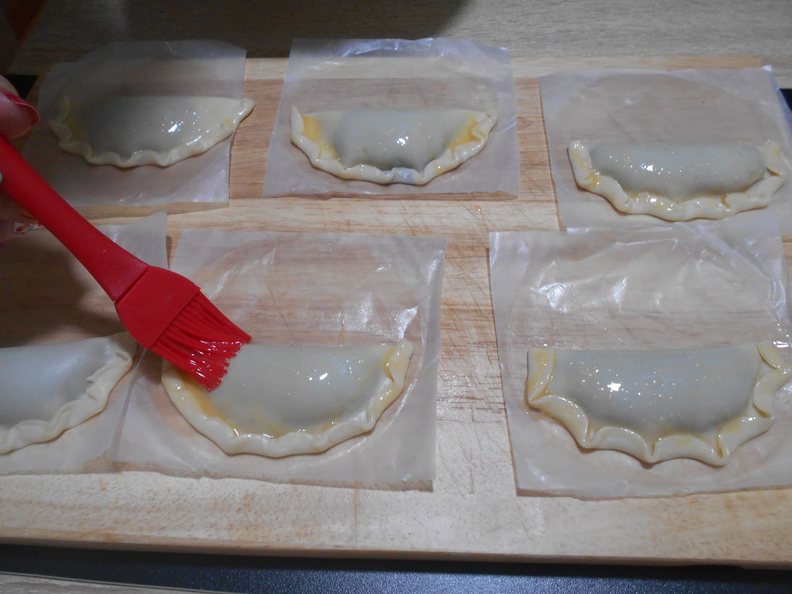 Pintamos con huevo batido, esto hace que se queden más doradas y bonitas las empanadillas .