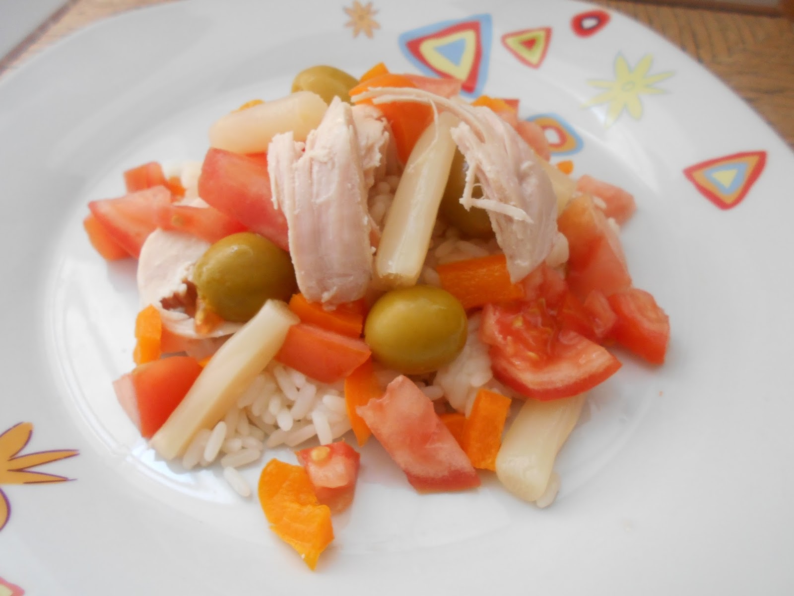 porque hace calor y apetecen cosas fresquitas y no complicarse nada en la cocina ¿verdad? pues la solucion a eso… una ensalada completa como esta de arroz con pollo