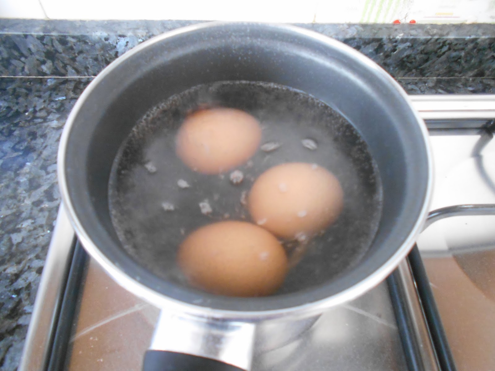 ponemos a cocer en agua con sal los huevos durante 10 min.