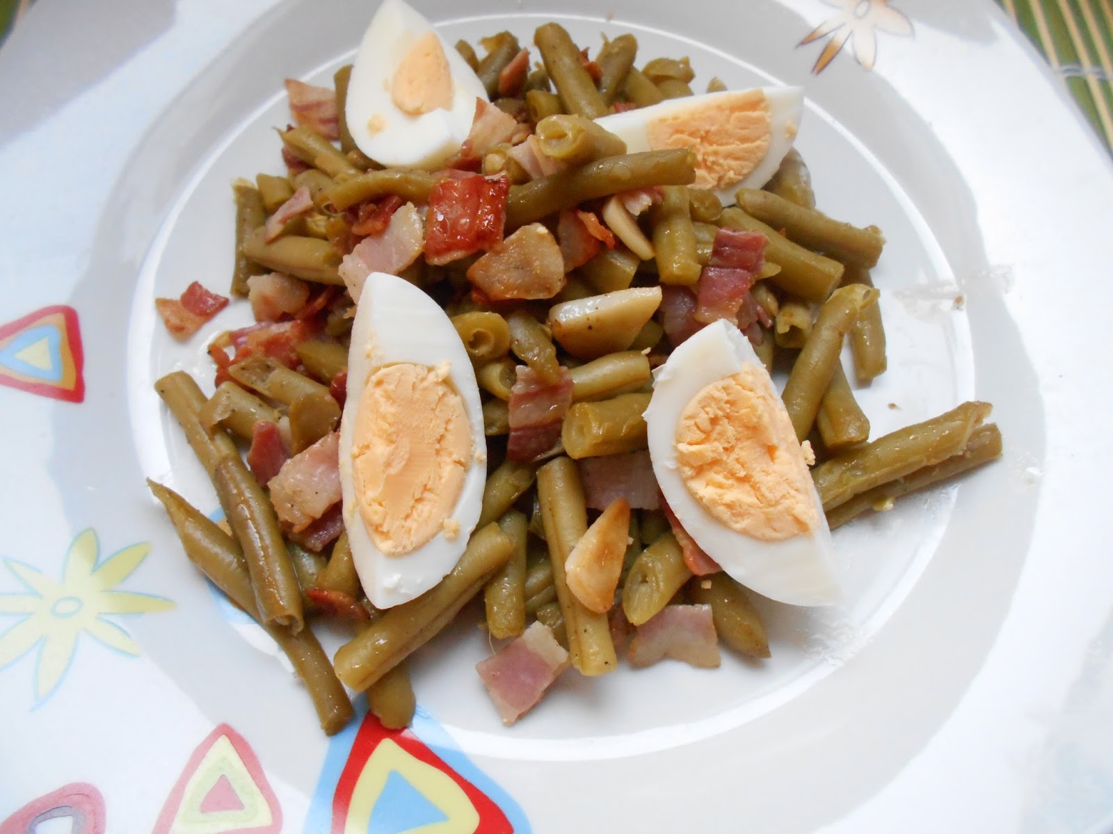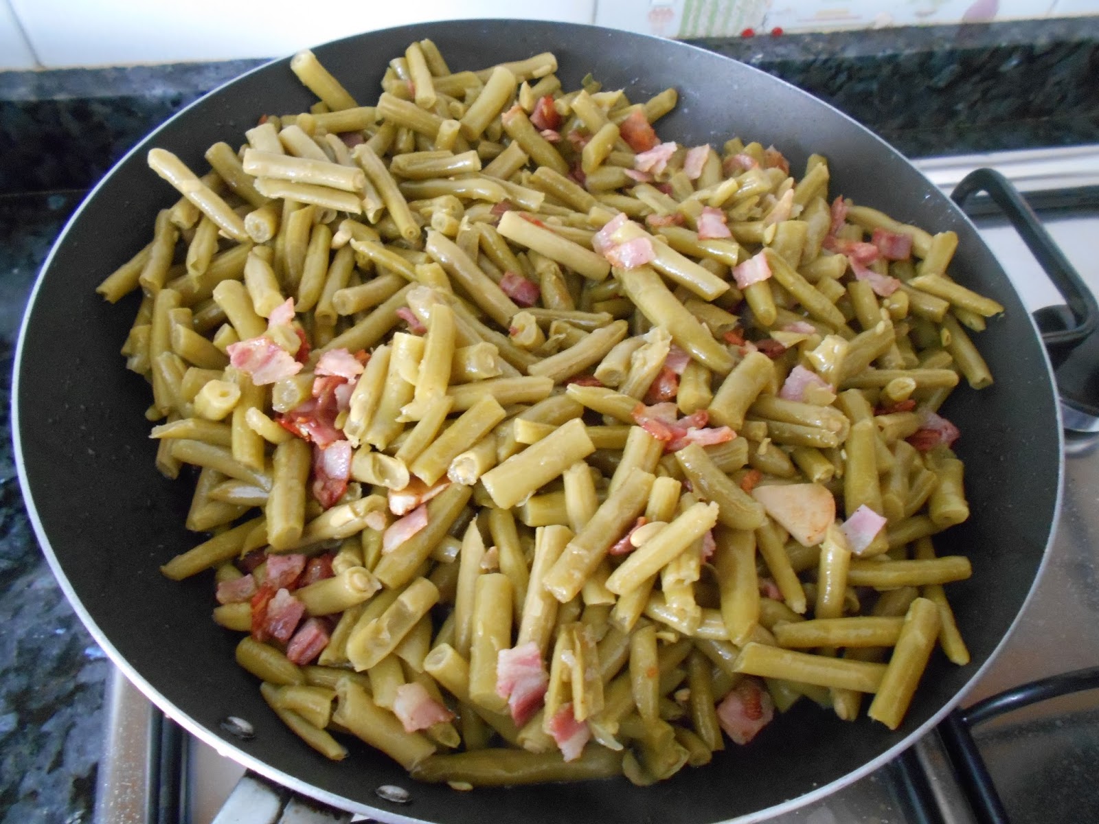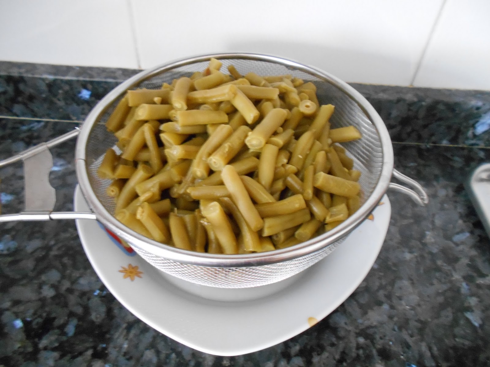 Añadimos las judias y salpimentamos. Salteamos todos junto ligeramente.