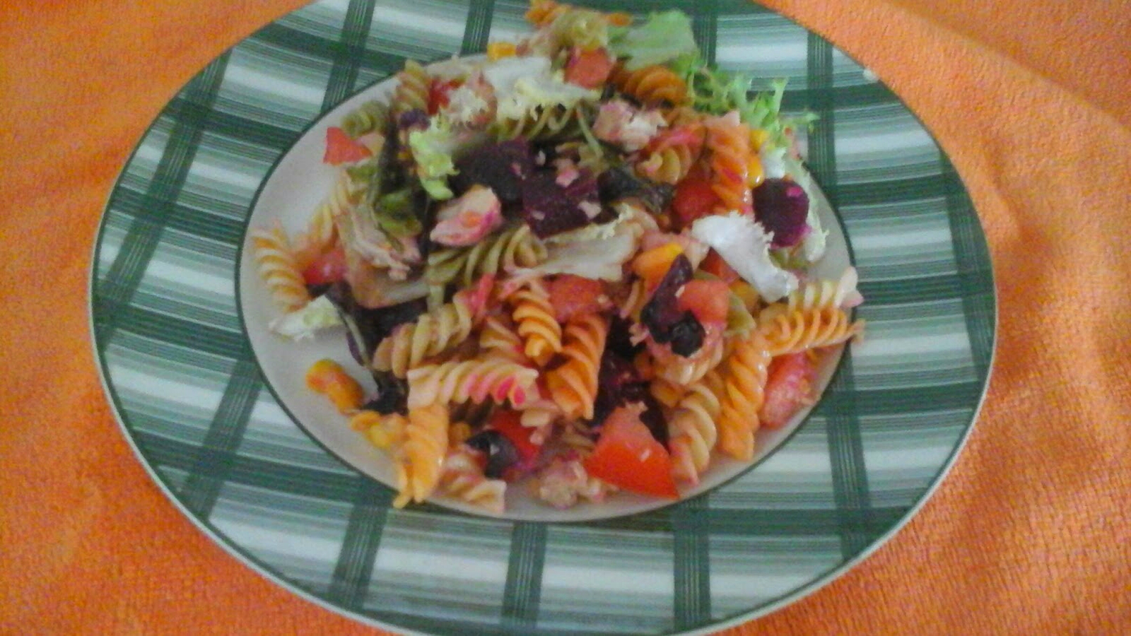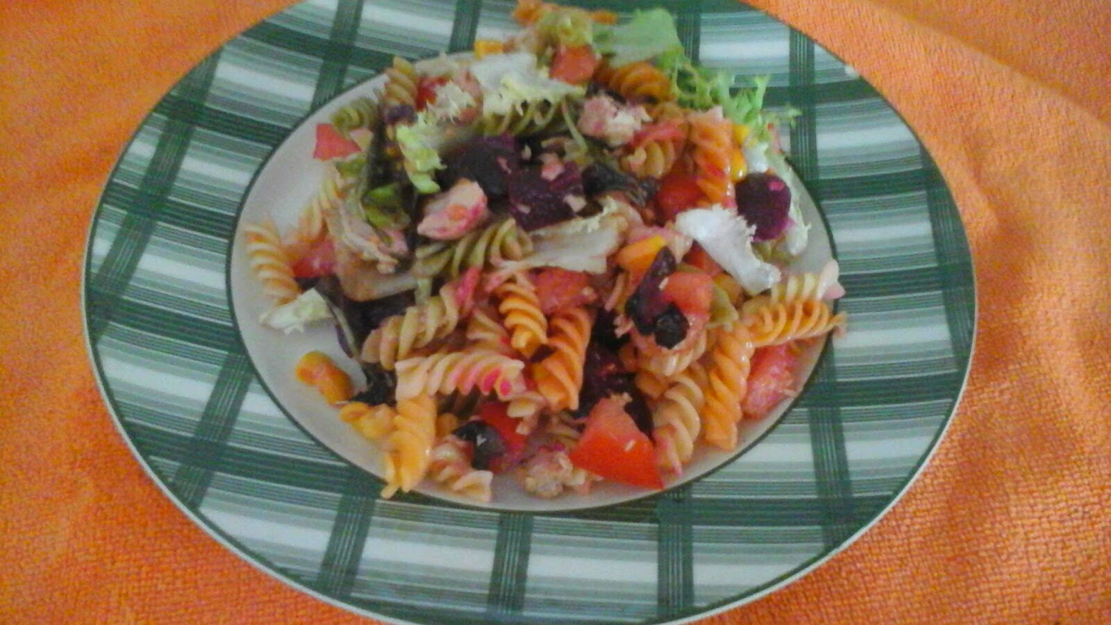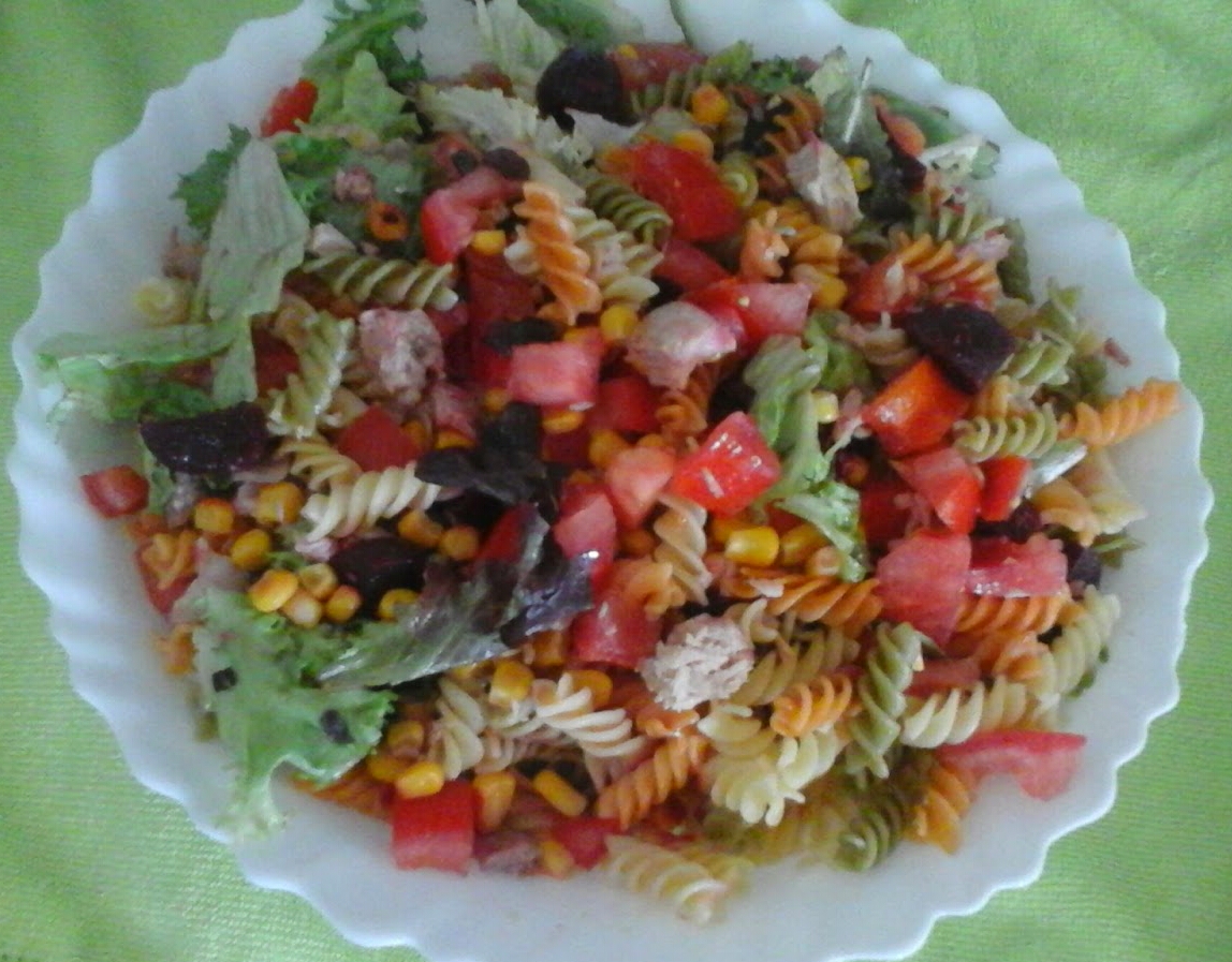 ENSALADA DE PASTA TRICOLOR CON ATUN