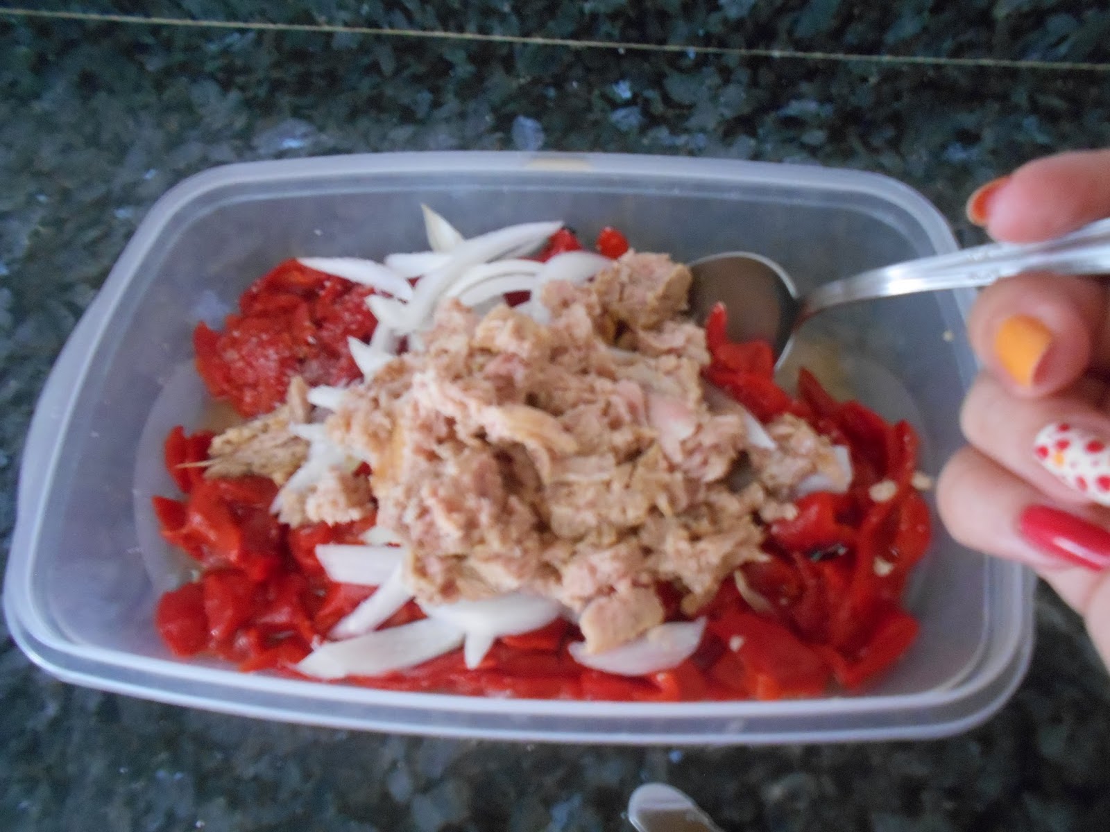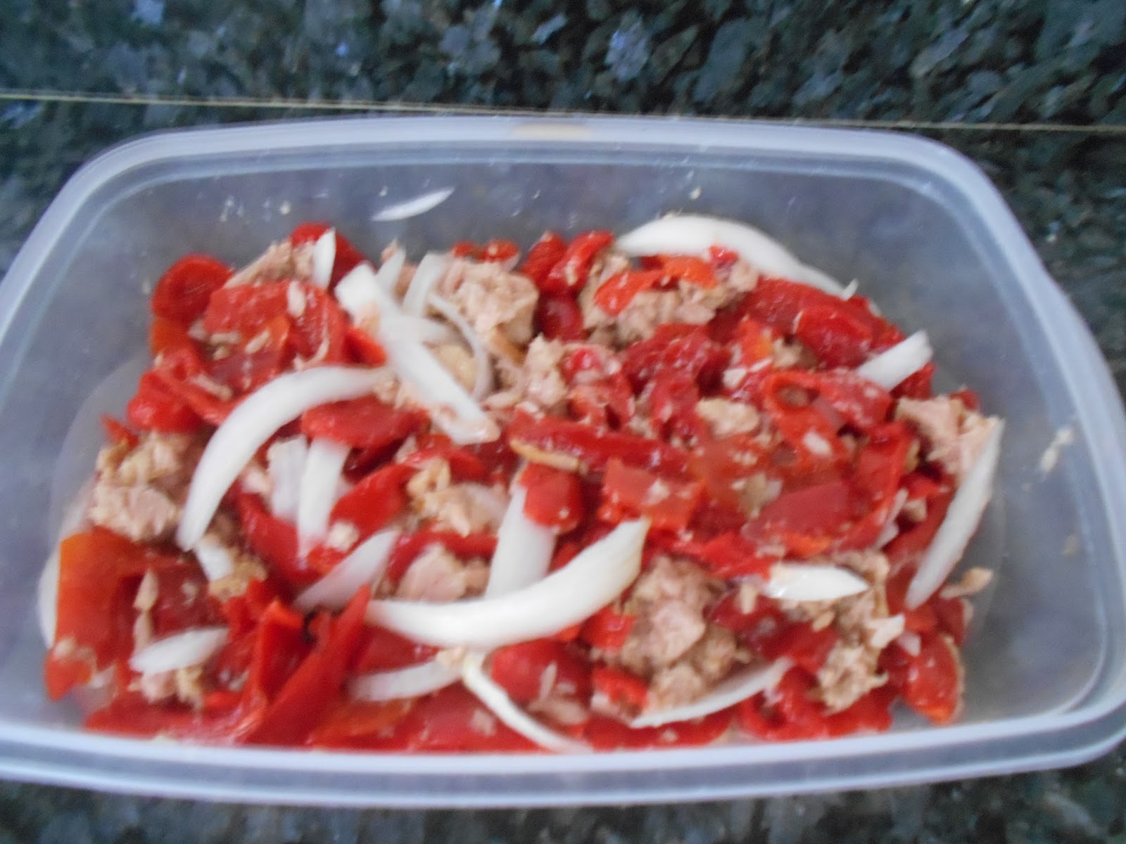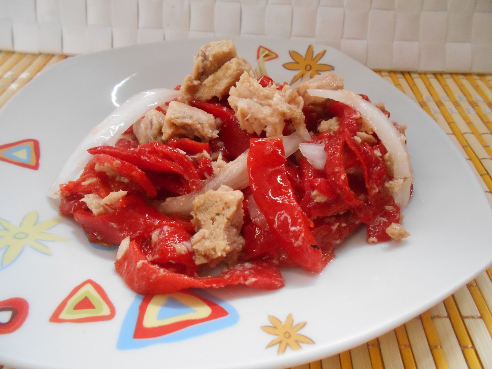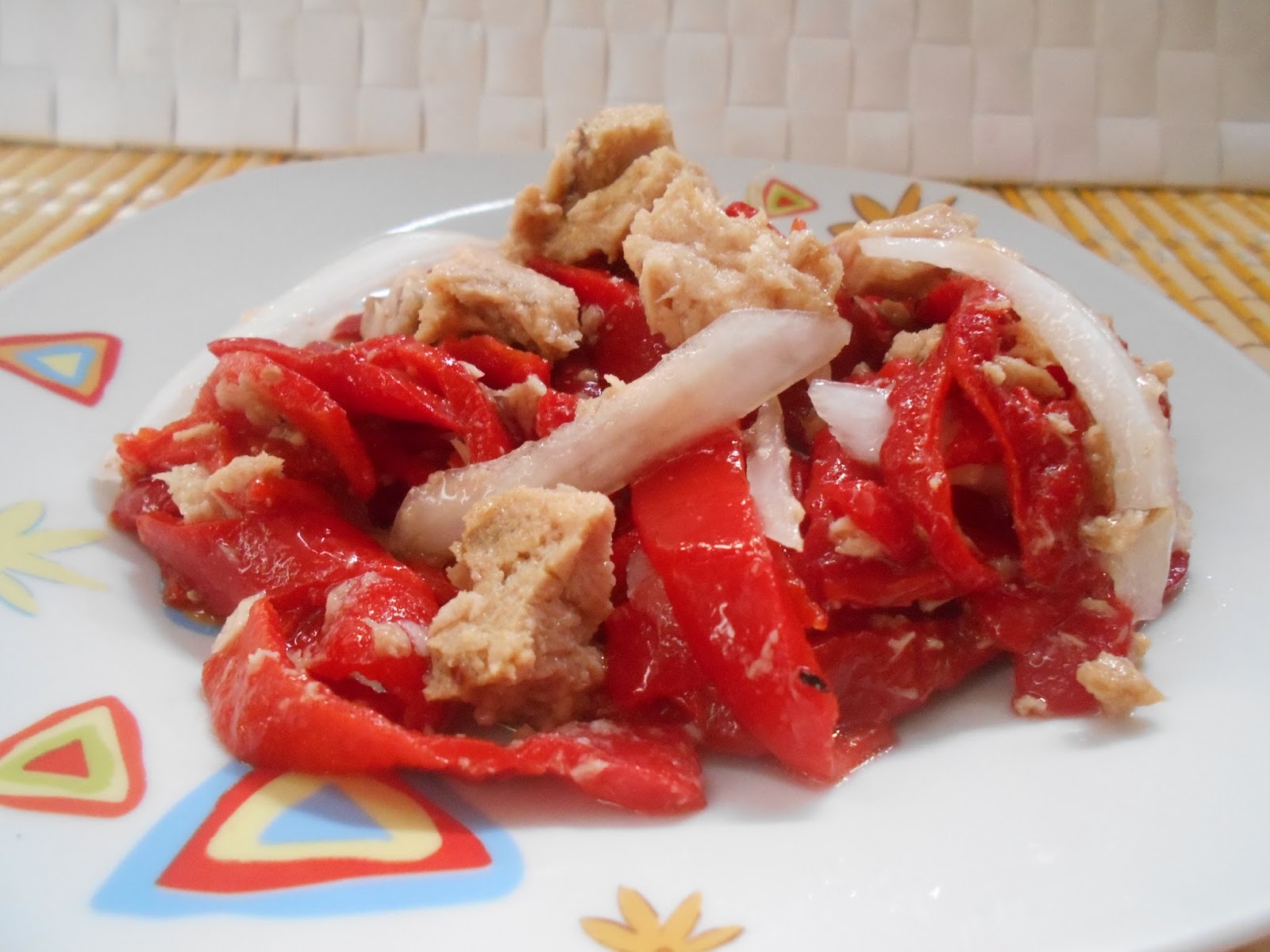 Hoy os traigo una de esas ensaladas sencillas y rapidas que a todos nos gusta, la ensalada de pimientos. Es super típica en Cádiz, aunque imagino que la haran en muchos otros lugares.