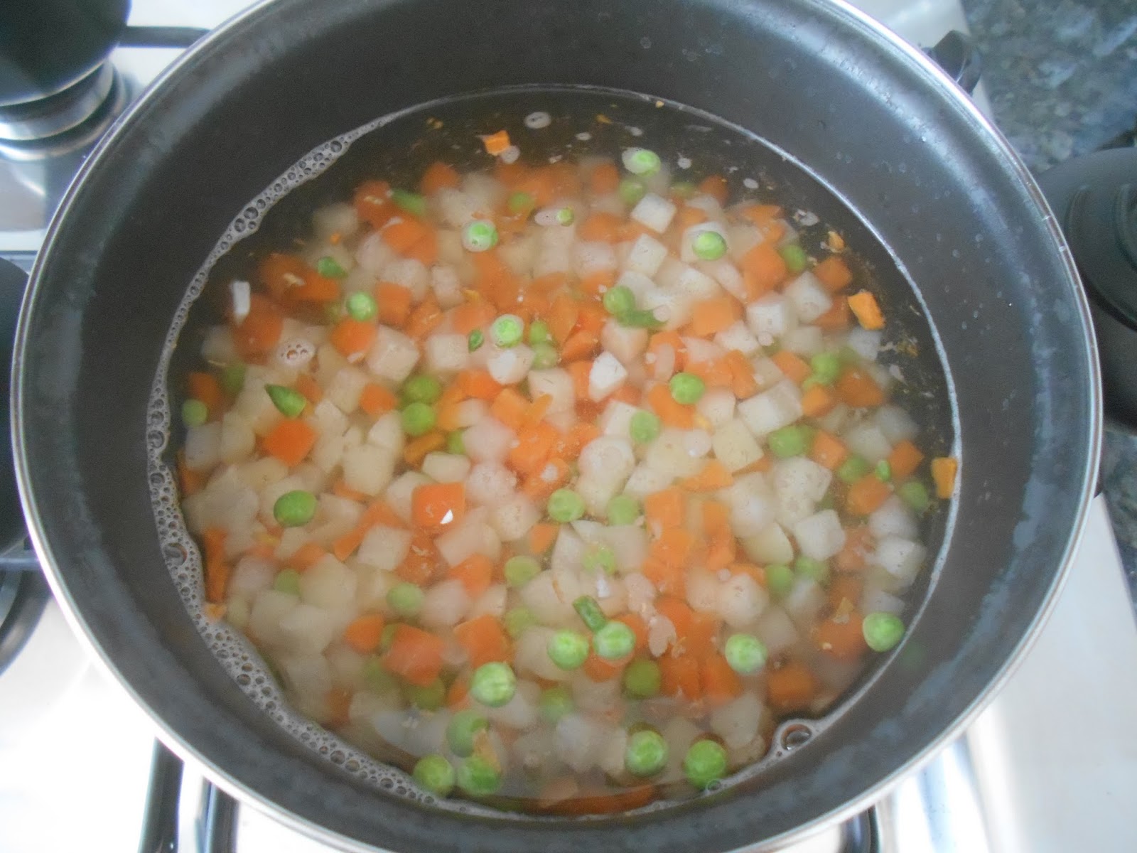 Ponemos en una olla agua y sal a hervir. Cuando rompa a hervir echamos la menestra y dejamos hervir unos 10min.