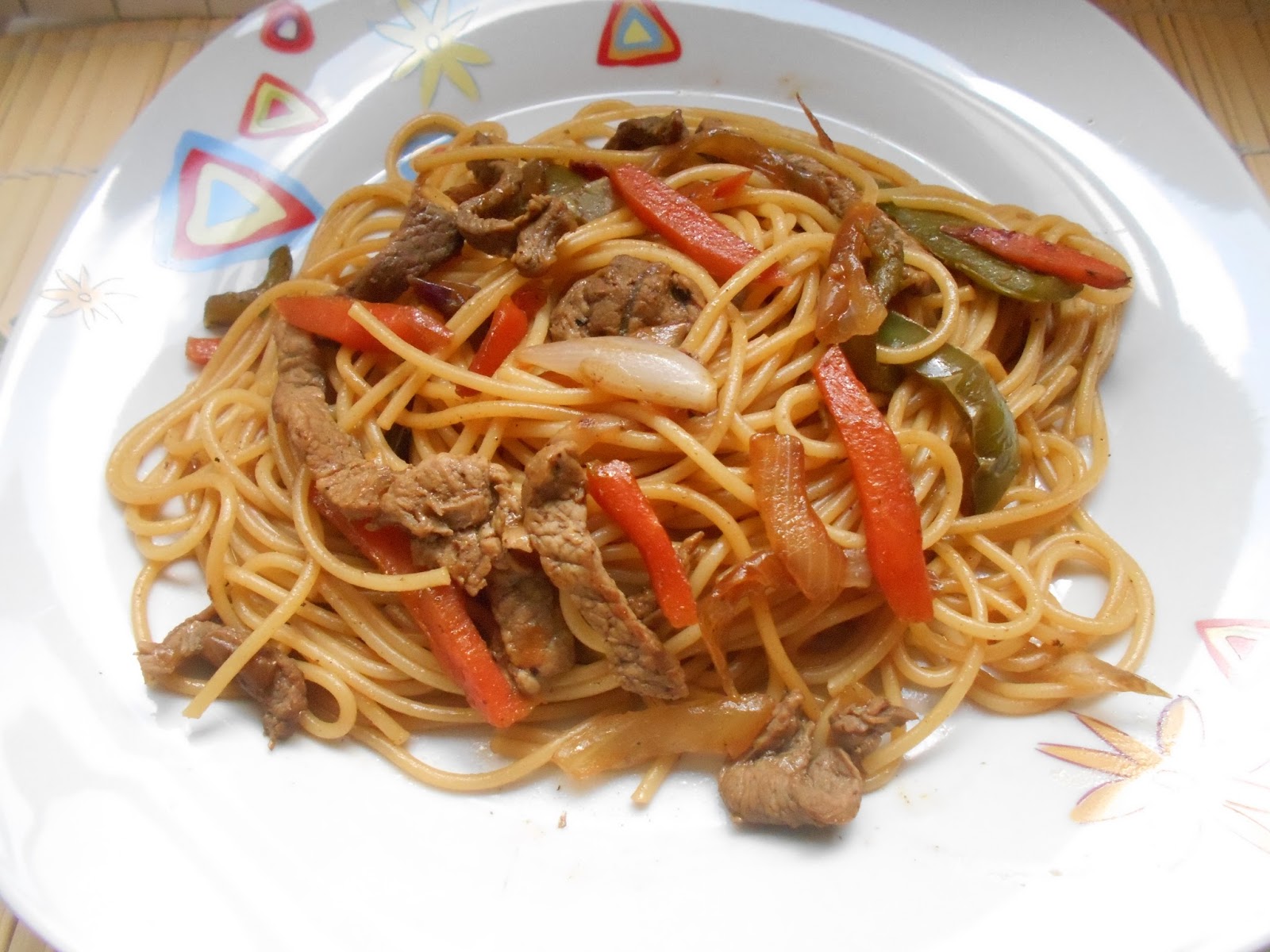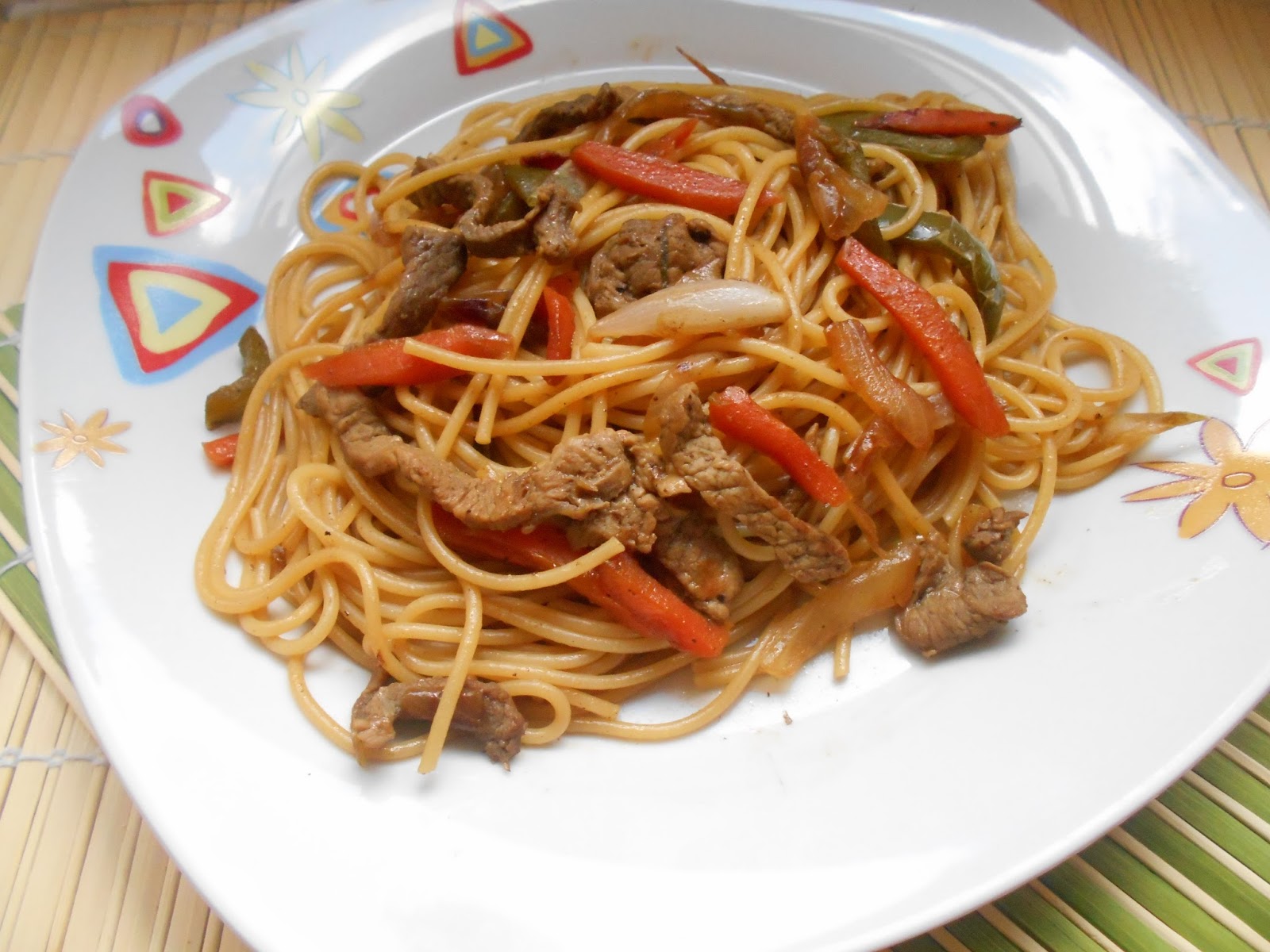 ESPAGUETIS CON TERNERA ESTILO CHINO
