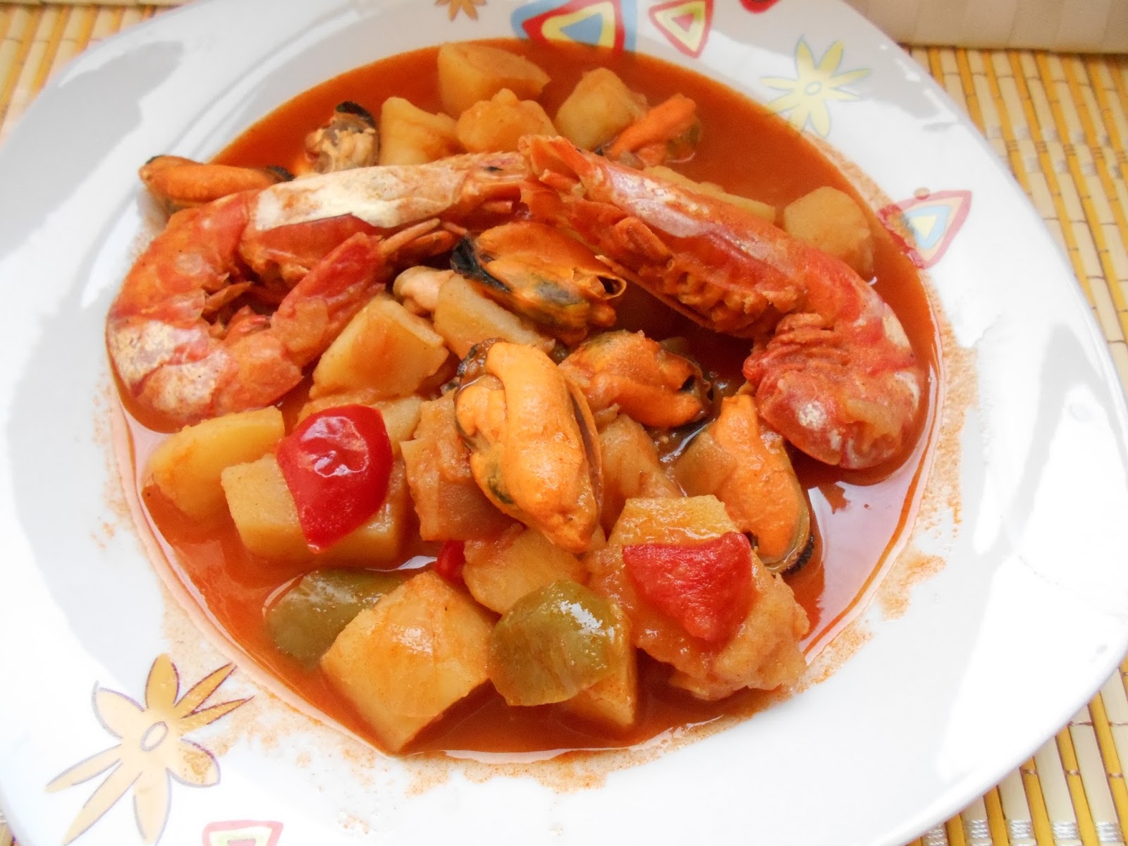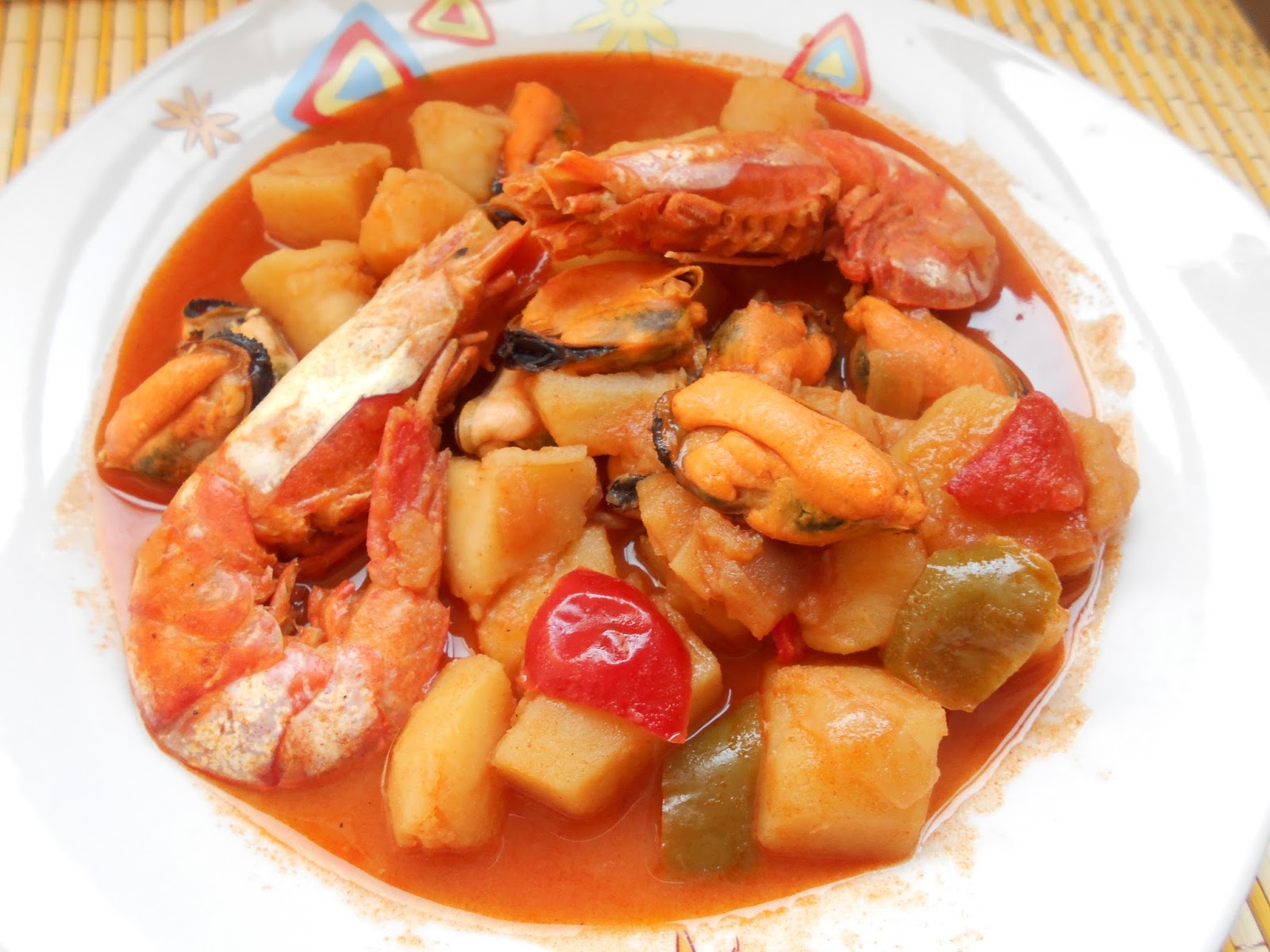 GUISO DE PATATAS CON MEJILLONES Y GAMBONES