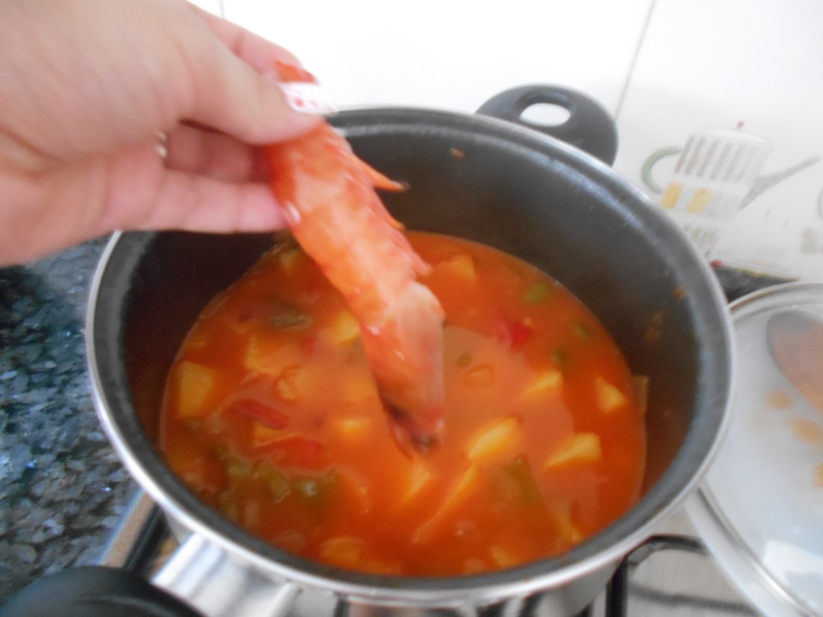 Cuando la patata este lista, añadimos los gambones y dejamos hervir 3-4 min.