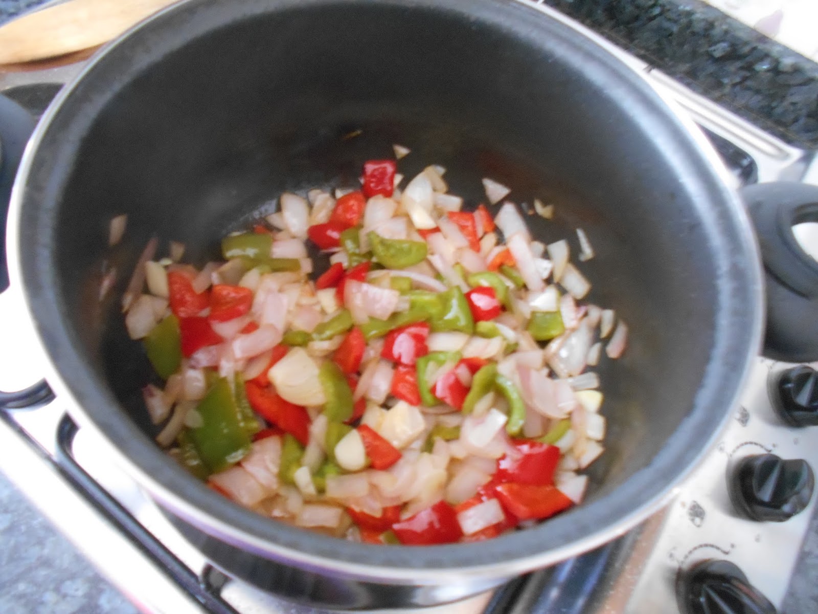 En una olla con aceite pochamos las verduras picadas.