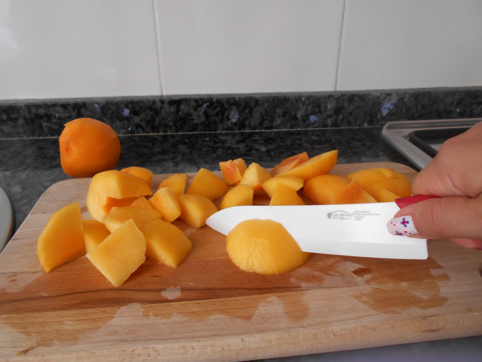 Pelamos y cortamos 3 melocotones (el otro lo reservamos)