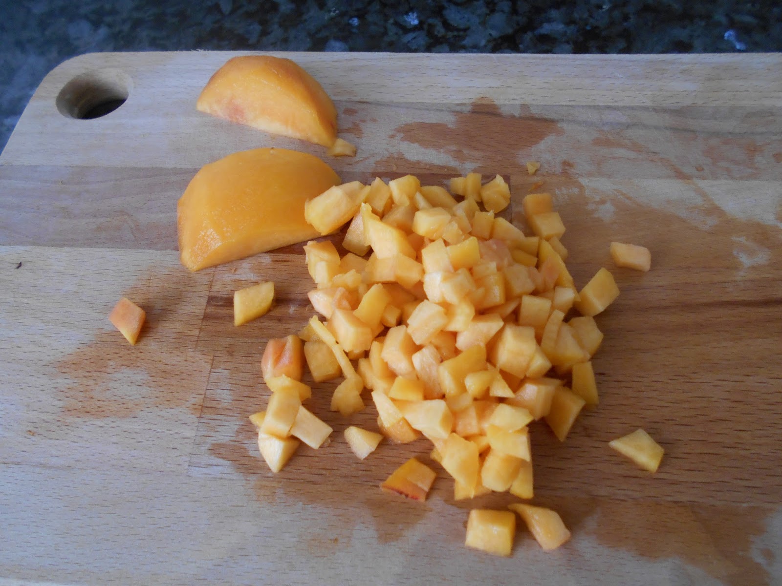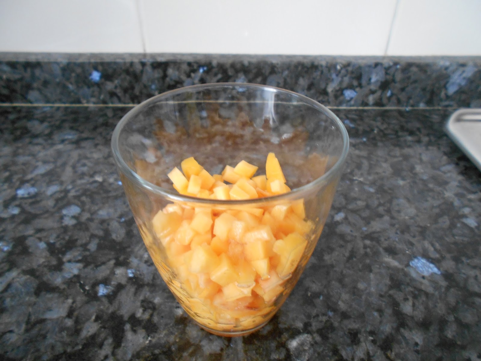 Cuando pasen unos 20min añadiremos los trocitos del melocotón que habíamos reservado.
